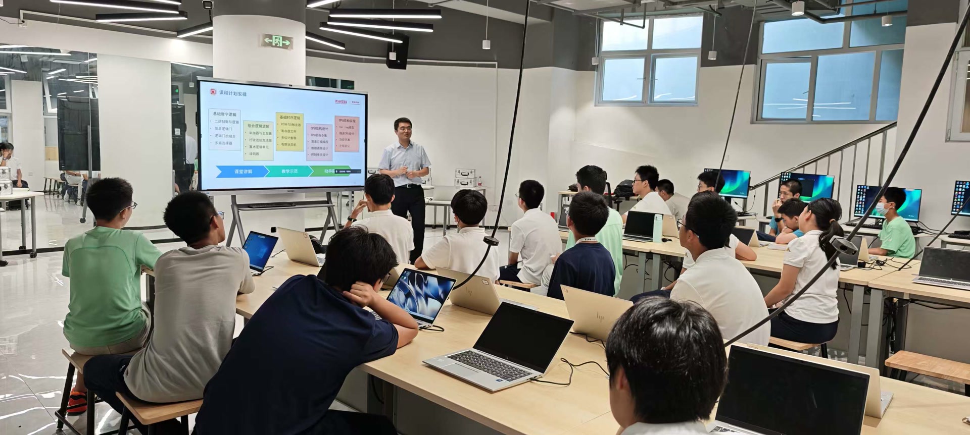 9月11日下午,北京十一实验中学机器人教室内,20多名高一年级学生迎来了一堂别开生面的“开学第一课”。在这个以芯片设计主题的课堂上,同学们将在国产自主CPU领军企业龙芯中科工程师的指导下,实现“亲手设计一颗能思考的芯片”。