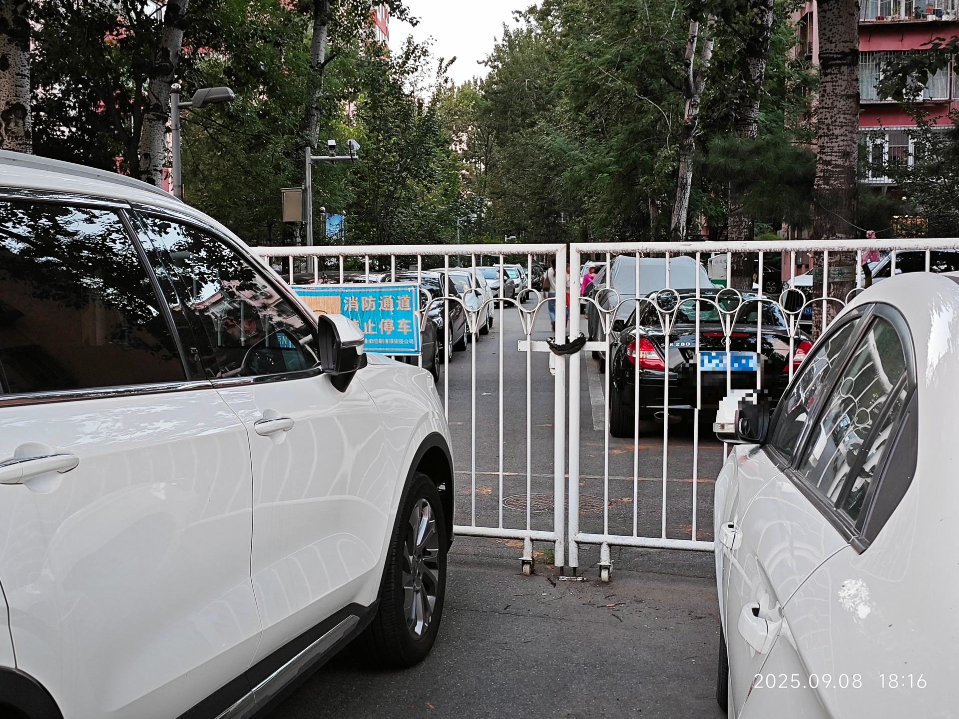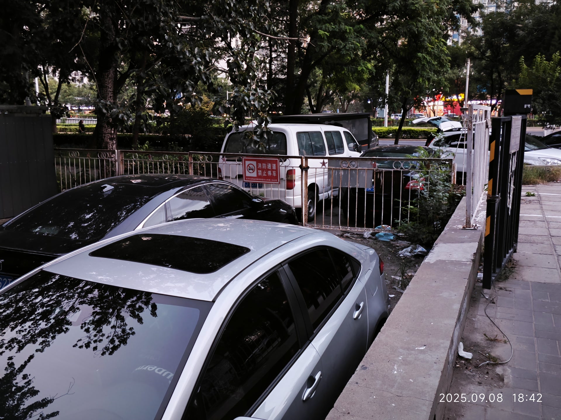 记者在周边多个小区走访发现,芳星园一区东侧、芳星园二区西侧、芳星园三区南侧及芳群园二区南侧多条施划有消防通道标识的道路,都存在被堵塞的情况。