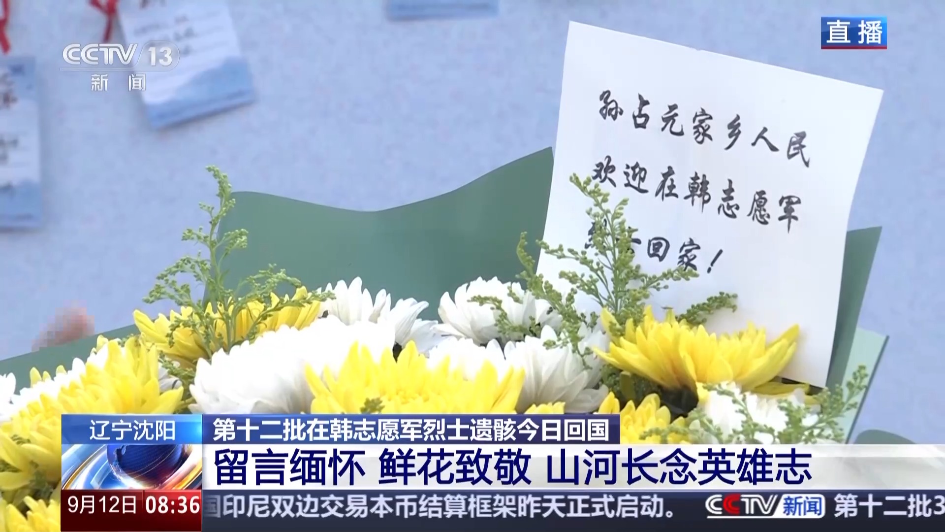 此时此刻,虽然距离英雄回家还有一段时间,但是我们看到沈阳抗美援朝烈士陵园的大门前,已经聚集了很多自发赶来的社会各界群众。为了让大家可以更好地抒发内心深处对先烈们的缅怀和敬意,大家看到在我的身后,由退役军人事务部和沈阳抗美援朝烈士陵园联合发起的,以“山河铭记 英雄回家”为主题的线下活动也在今天早上正式开启。一张张小纸条,一个个或娟秀或稚嫩的方块字,都在默默地表达着对英烈的敬意。