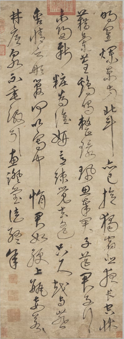 而秋后星空,最为人熟知的就是牛宿和女宿,即牛郎与织女。这一篇古代神话故事流传至今,仍是爱而不得的写照,也是山河阻隔、君臣无缘的隐喻,因为两个星宿之间,横亘着永远不能跨越的银河。无论是被称为河汉、星汉,还是天河,这密密麻麻的星云带给了人们多少想象!这星河在暗夜中隐隐流动,波光粼粼,“星汉西流”正是秋天星空的特征,银河此时由夏季的南北走向慢慢开始向西北转向,午夜时分看得格外清晰。“天阶夜色凉如水,卧看牵牛织女星”,清秋的辽阔,也是漂泊客杜牧(803—852)的孤独,借宫女的团扇,送来秋冷的肃杀,他的书写中温软尽失、透出凄凉。李清照(1084—1155)写“天接云涛连晓雾,星河欲转千帆舞”,银河正在变换方向,南渡之后的生活让人愤懑,婉约诗人一句“九万里风鹏正举,风休住,蓬舟吹取三山去”,写完拂袖掷笔,无半点妆粉气!王铎(1592—1652)的草书轴“山河阻绝,星霜变移,伤摇落之飘零,感依依之柳塞。”是为临褚遂良《山河帖》,然而与原帖风貌全然不同,褚遂良此帖有浓厚的晋楷味道,而王铎的狂草写出纵横四野的悲情。