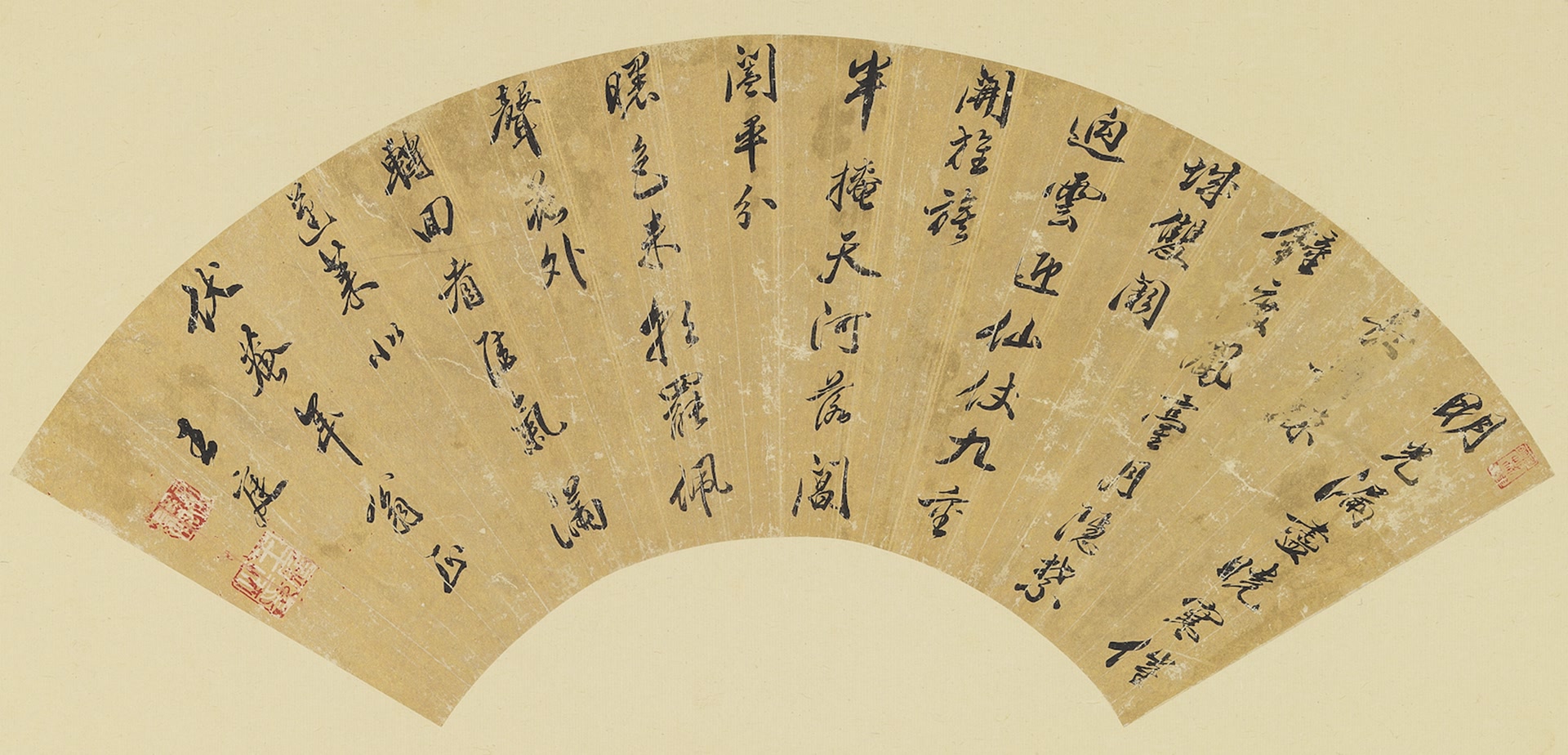 北斗七星是辨识方向和季节的重要标识,北极星在东边,北斗斗柄旋转了,这时候斗柄指向西,也是秋天的特征。每每秋夜,便思念泛涌。不是思君,便是思亲。明代高启的诗中写道,“明星烂东方,北斗亦已旋。”沈粲书写的这首诗把想念洋洋洒洒地倾倒而出,“君如绠上瓶,妾若井底泉。不垂汲引惠,澄莹徒终年。”思妇絮叨地述说着对丈夫回家的期盼,沈粲笔意缠绵,似浓浓情丝,斩不断理还乱。文徵明书写的《秋兴八首》中,“夔府孤城落日斜,每依北斗望京华”,找到北斗,君王所在的方向就大概可以猜测出了,这是杜甫望向长安的哀叹。