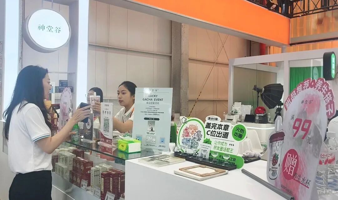 春风药业展区内,以医药健康为主线,衍生出的美丽时尚版块、国潮饮品版块成为市民关注的焦点。国潮面膜、护手霜、雪梨枇杷膏等新型产品陈列其间,市民们在专业护肤顾问的引导下试用产品,感受功效。