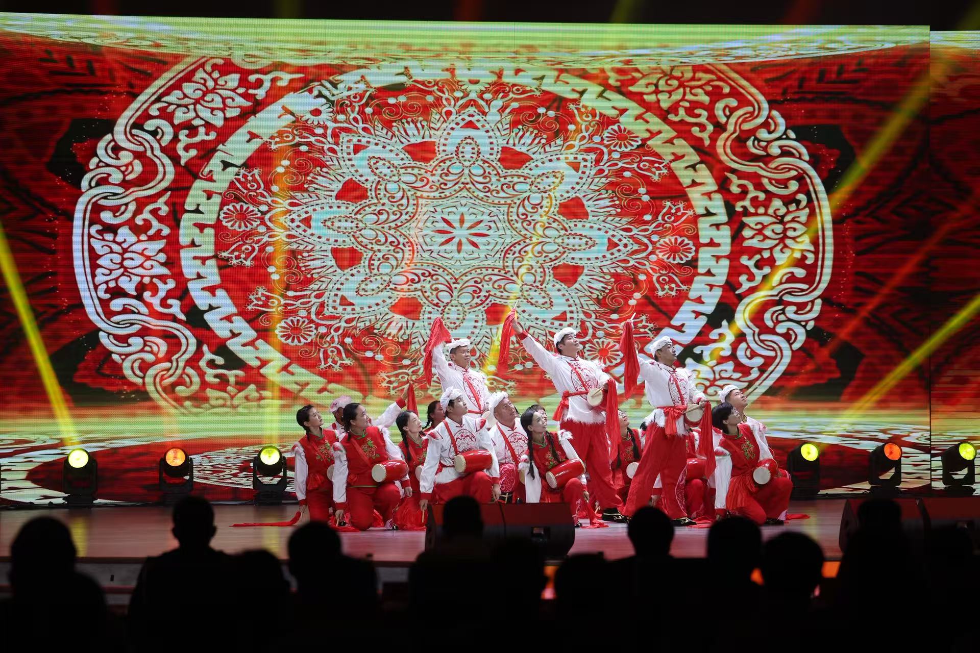 9月12日,北京音乐产业园举办了丰收节展演。朝阳农村地区的居民自导自演了十余个节目,包括腰鼓、舞蹈、情景剧等。现场还特别设置了以“农墨重彩”为主题的农民画展,用鲜艳配色和朴实的笔触,记录朝阳农村地区的发展。