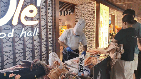 正在选购水产的孟女士笑着表示:“这儿的水产品类很多,我准备今天买回去试试做。店内的试吃也多,感觉我今天都不用吃中午饭了。”