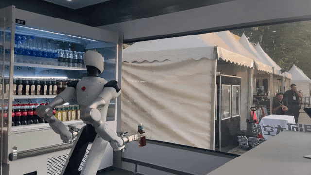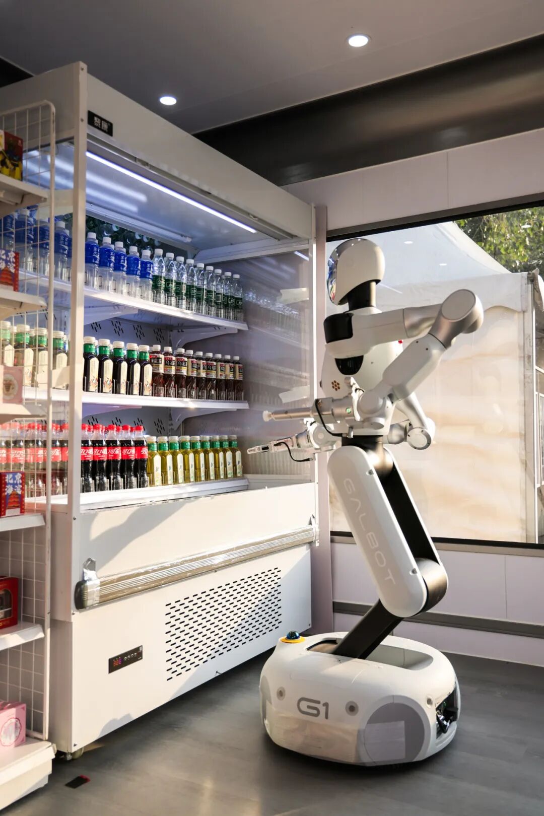 记者在现场看到,在这处约9平方米的太空舱内,机器人Galbot作为“智能店员”,独立承担接待、点单、支付、取货、交付全流程服务,全程无遥操。它不仅支持多语言实时交互,还能依据区域文化特色定制专属服务内容。
