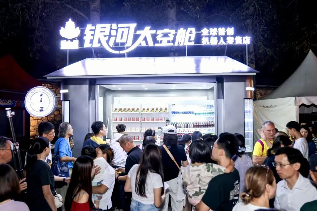 值得一提的是,银河太空舱并非首次亮相。今年8月初,首座银河太空舱已成功落地中关村大融城,仅9平方米的太空舱覆盖饮品、小食、文创等多类高频消费品,支持冷藏与冷冻等多种存储条件,成为全球首个人形机器人智慧零售应用案例。据王鹤透露,银河太空舱单舱日均服务超千人次,订单量约500单,能有效提升周边人流量30%-40%,显著激发区域商业活力。