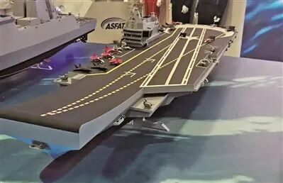 土耳其在“蓝色国土”海军技术展上展出的“国家航母”模型。