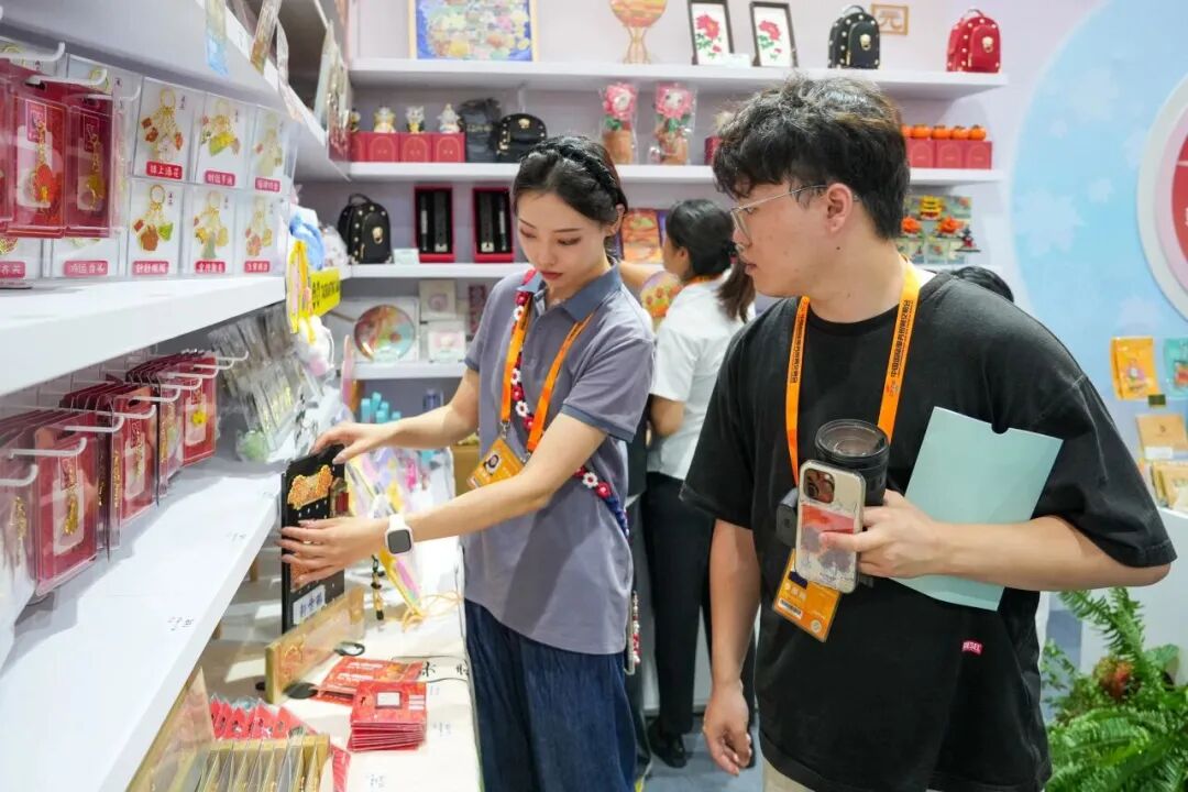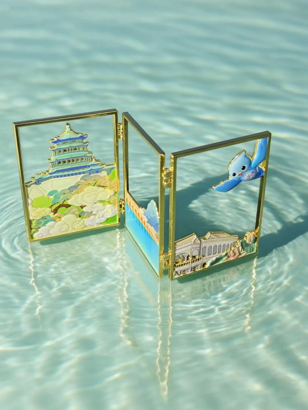在颐和园古色古香的展台前,陈先生饶有兴致地端详着两款精致的冰箱贴:“这个设计真巧妙!福燕落在古建筑上,既有现代盛会的活力,又有皇家园林的底蕴,还是个三折叠的,带回家做礼物太合适了。”
