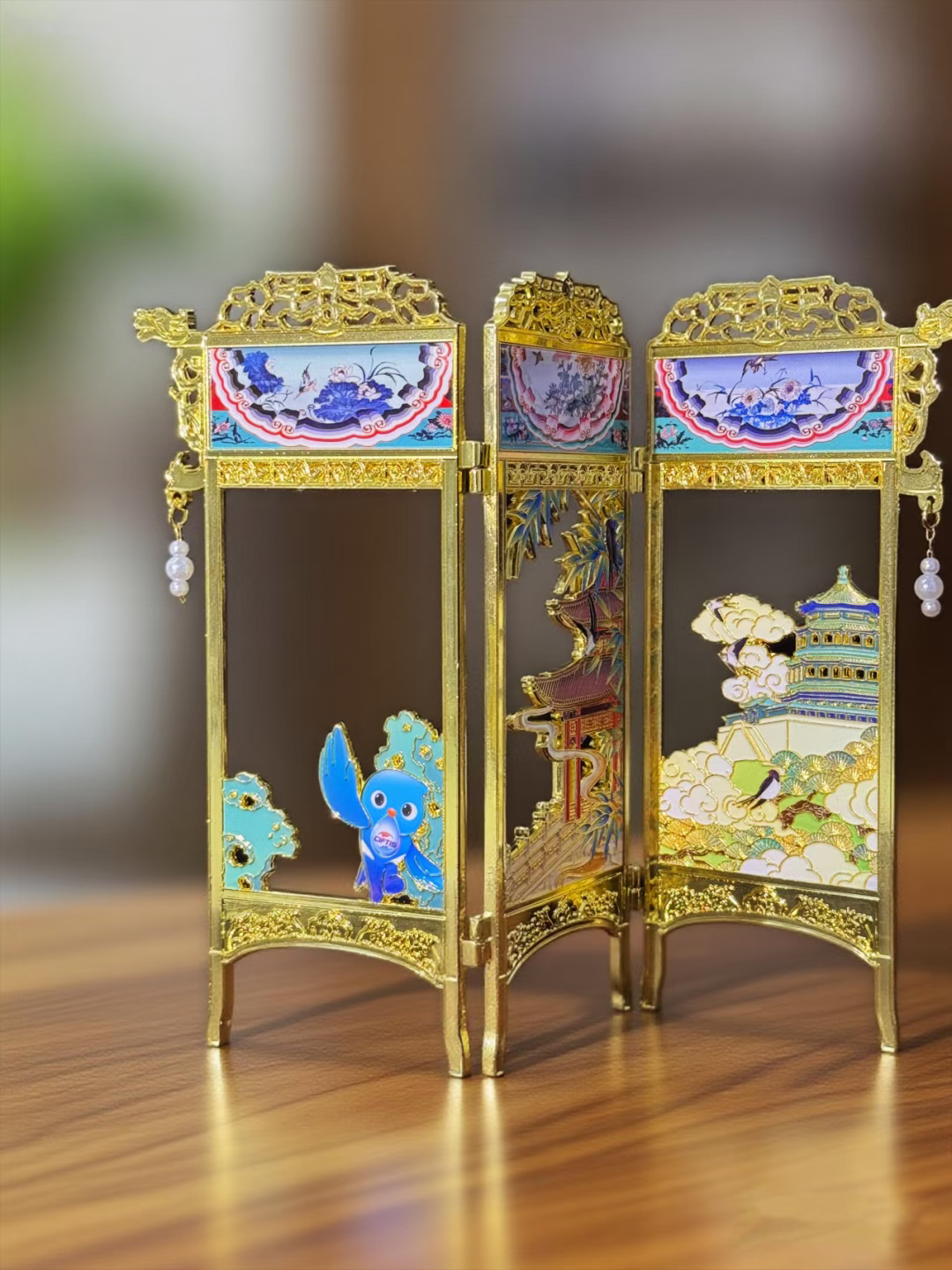 颐和园展台的魅力不止于此。以“颐和园之韵”为主题的四季流沙冰箱贴,采用金色兰花边框复刻古建筑雕梁画栋之美,顶端如意造型传递吉祥寓意,配以灵动流沙模拟四季光影流转。与菓凯联名的香氛系列,以颐和园馆藏“百鸟朝凤屏风”为蓝本,将东方美学与现代香氛艺术完美结合。纸雕便签盲盒则选取颐和园五大标志性建筑,通过多层纸雕嵌套设计,撕取便签即可层层展现立体景观,趣味十足。