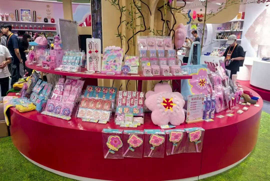 在玉渊潭公园的“玉渊花园在服贸,小樱新品等你来!”区域,色彩缤纷的文创新品早已准备就绪,等待观众前来探索、互动,开启一场沉浸式的文创之旅。