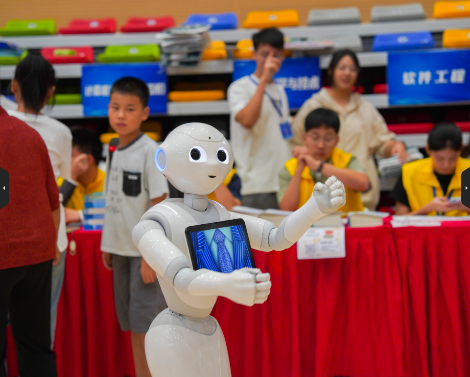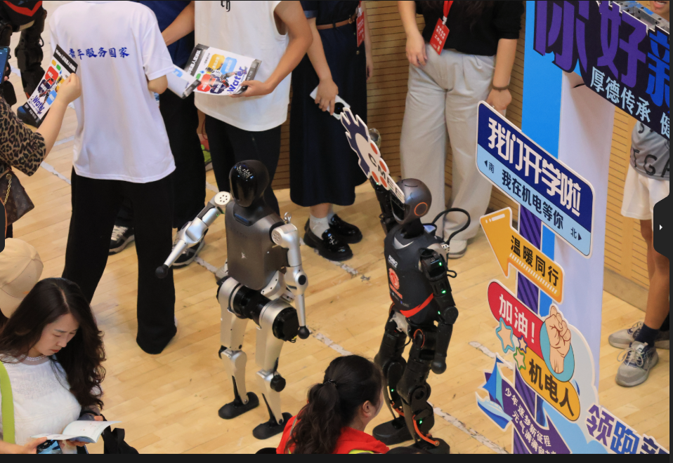 相关负责老师介绍道:“今年迎新,学校安排了2台人形机器人与学生互动,既增加了趣味性,也可以减轻志愿者的部分压力。与此同时,我们还展出了十余台以往获奖的机器人作品,通过这些‘科技小明星’的亮相,向新生们展示创新与实践的魅力,激发他们投身科技探索的热情。”