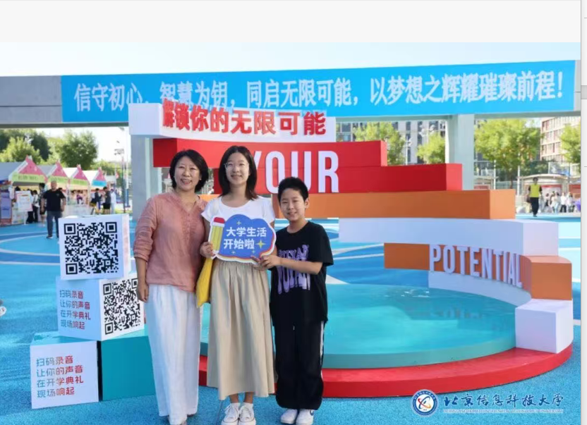 再往前走,“蔚蓝广场” 的 “千人共声” 互动区更热闹。新生们排着队扫码上传自己的声音,有人说 “希望在北京信息科技大学学到真本事”,还有人调侃 “求学长学姐推荐好吃的食堂窗口”。负责这个区域的同学告诉记者:“指定寄语会在开学典礼现场播放,让每个新生都能拥有专属‘开学之声’!”