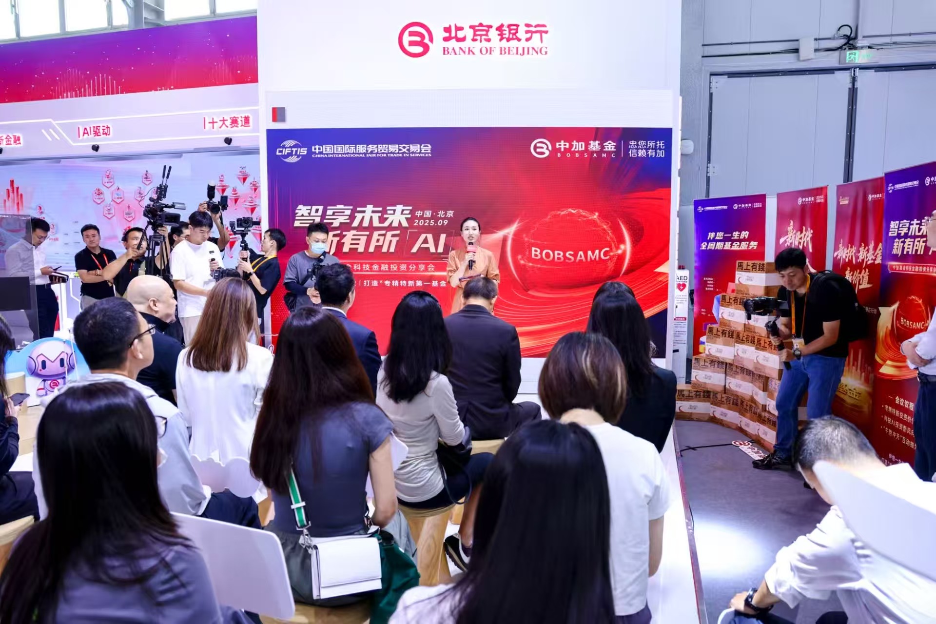 9月12日下午,中加基金特别举办了以“智享未来 新有所AI”为主题的科技金融投资策略分享会,北京银行党委书记、董事长霍学文在现场与参会者互动。