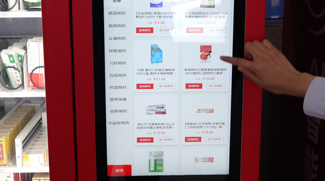 设备配备了全封闭恒温恒湿环境控制装置,为药品提供稳定、适宜的存储环境。每台设备可以提供超过40种常用非处方OTC(绿标)药品。药品种类涵盖了防暑降温、感冒、外伤处理以及消化系统问题等常见健康需求的药品。