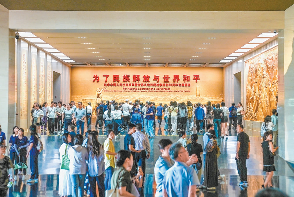 焕然一新的展厅内,《为了民族解放与世界和平——纪念中国人民抗日战争暨世界反法西斯战争胜利80周年主题展览》正在展出。自开放以来,展览热度持续攀升,来自四面八方的观众到此感悟伟大抗战精神。