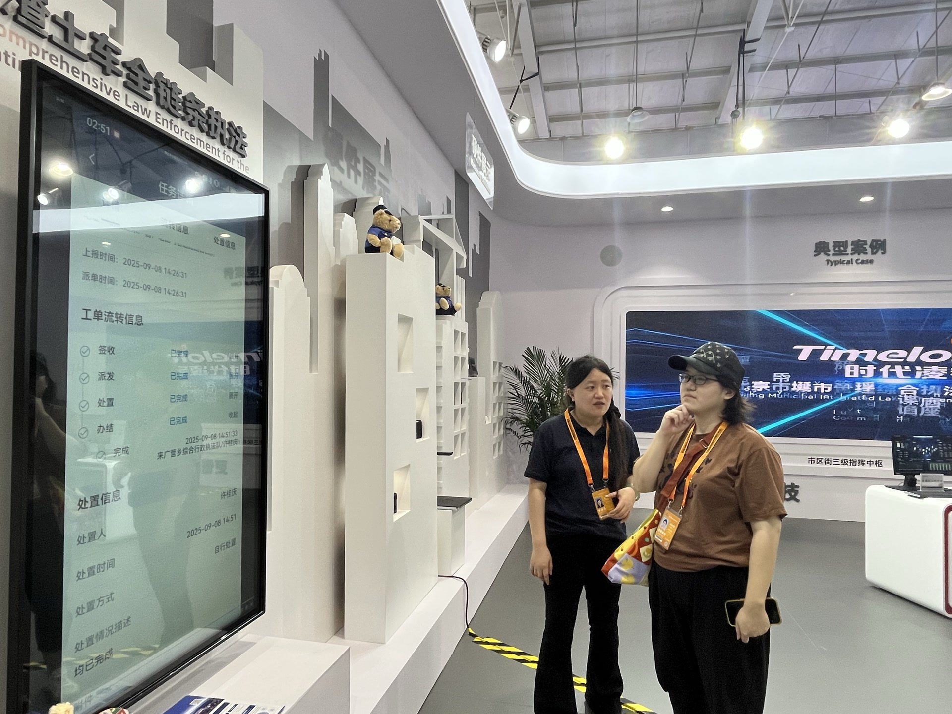 当前,北京“渣土车全链条执法”正在试点。服贸会现场,一块显示屏展示了城管智慧执法系统及执法全流程。无需工作人员在场,巡检摄像头会自动识别违法行为,及时捕捉渣土车车牌号、违法地点、现场音视频,工作人员远端再在系统中确认,形成“发现-派单-处置”的数字闭环。