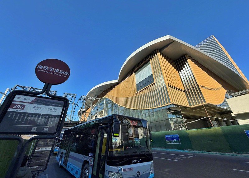 在石景山区,苹果园交通枢纽主体已经完工。工程分南北两区建设,通过一条连廊上跨苹果园南路。枢纽内部集成了地铁和公交,上盖将规划公寓、酒店、写字楼和商业购物等功能,成为京西新地标。苹果园枢纽时代销售经理张潇介绍: