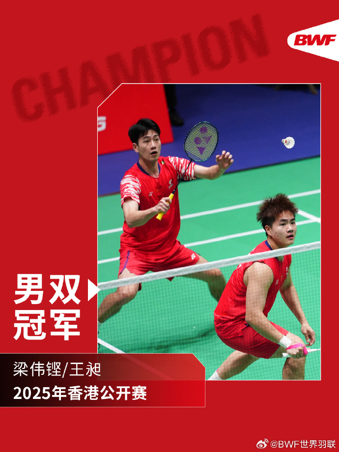 一往无前,释放能量!恭喜梁伟铿/王昶夺得2025年香港公开赛男双冠军,恭喜兰基雷迪/谢提获得亚军!