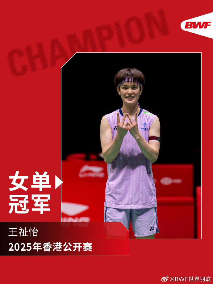 王祉怡夺得2025年香港公开赛女单冠军。