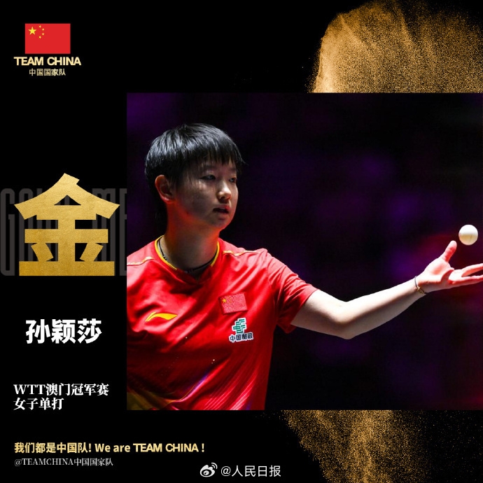 国乒包揽WTT澳门冠军赛男女单冠军