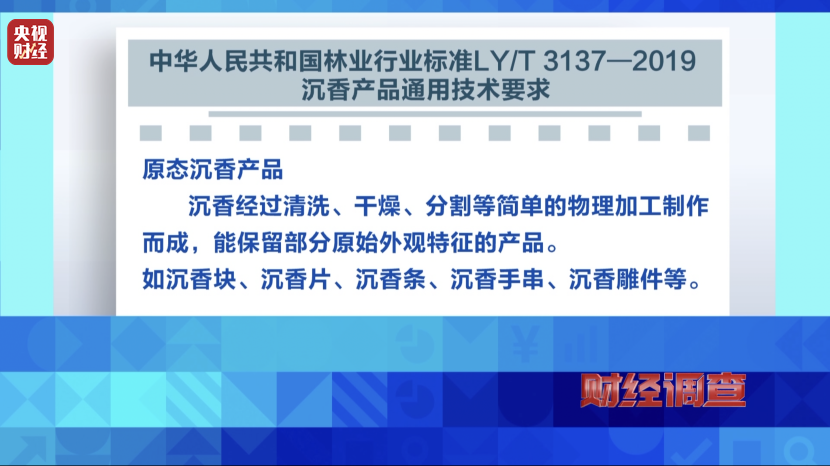 中华人民共和国林业行业标准LY/T 3137—2019《沉香产品通用技术要求》中明确规定: