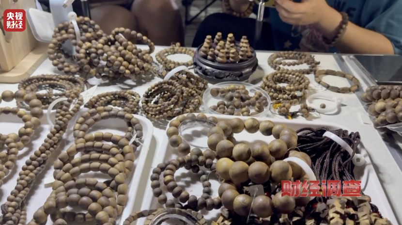 根据消费者线索,记者来到东南地区的“中国沉香之乡”核心区。到了夜晚,“沉香夜市”更显热闹,上百家商户集中在镇里的广场露天摆摊,各类沉香产品琳琅满目。