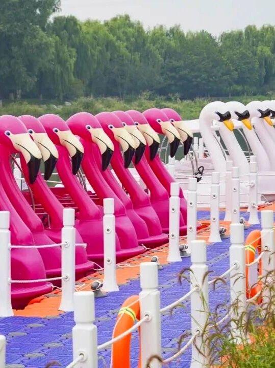 房山刺猬河畔又添新亮点——“福禄轻航 游船码头”正式开放啦!码头20艘游船齐亮相,游船造型设计为粉嫩的火烈鸟和圆滚滚的大白鹅,漂浮在水面上的画面萌趣可爱,想吹河风、赏美景、享悠闲?来这里就对了!