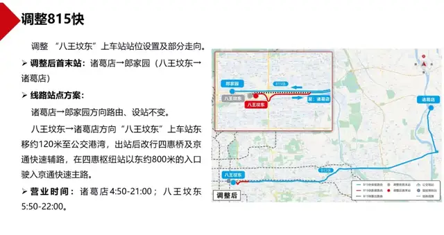 调整后首末站:诸葛店→郎家园(八王坟东→诸葛店)