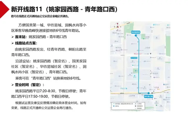 此次新开2条公交线路,调整11路、666路等6条公交线路,旨在优化全市公交线网布局,优化有关区域出行服务,提升公共交通运行效率。