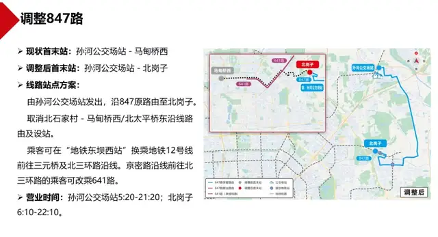 郝家府公交场站→大北窑东方向路由、设站不变。