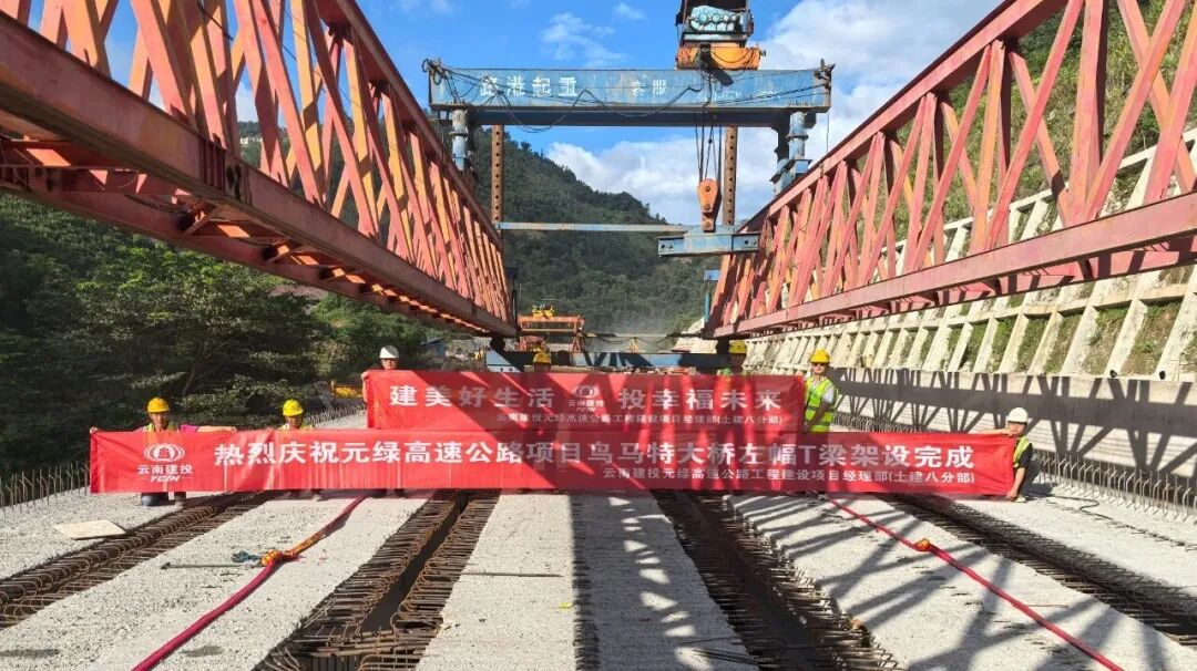 9月4日,元绿高速公路项目鸟马特大桥左幅顺利完成梁板架设,至此该桥梁板全部架设完成。