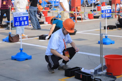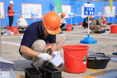 随着比赛哨声的响起,参赛选手们迅速进入比赛状态,大家严格按照混凝土试块制作操作流程进行操作,试膜准备、刷抹脱模剂、装模、振捣……每一处细节都凝聚着选手们对专业的热爱与追求。试块制作完成后,选手们又继续理论考试,继续以饱满的热情和扎实的理论基础,展现自己的技术知识水平。