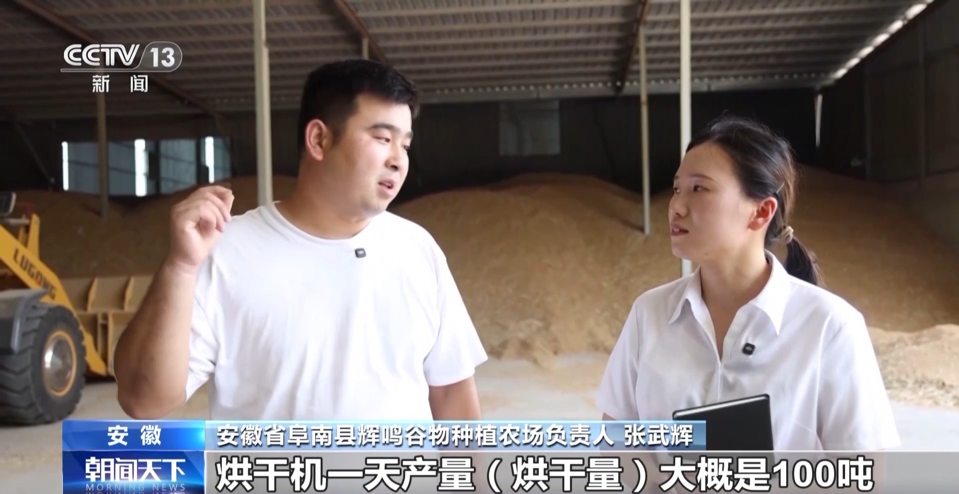 安徽省阜南县辉鸣谷物种植农场负责人 张武辉:烘干机一天烘干量大概是100吨,一组是30多吨,一个小时可以降1%含水量。