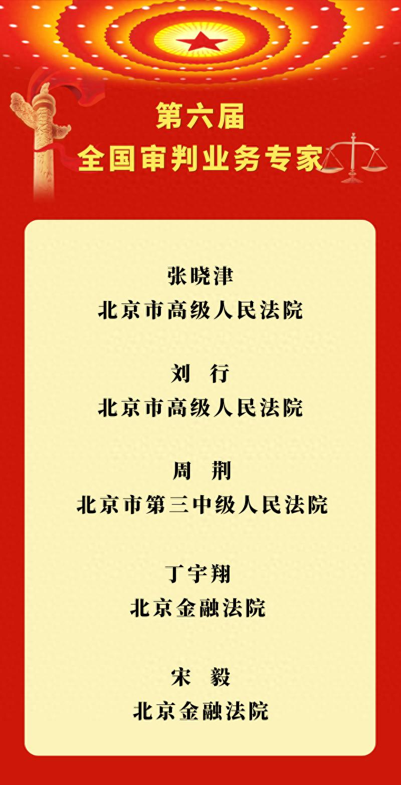 其中,北京市高级人民法院张晓津、刘行,北京市第三中级人民法院周荆,北京金融法院丁宇翔、宋毅获此殊荣。