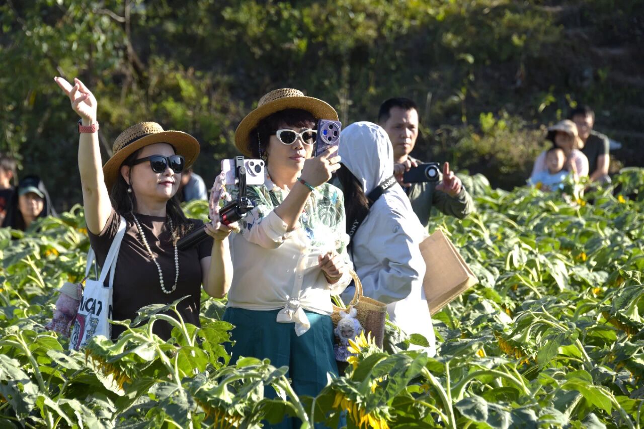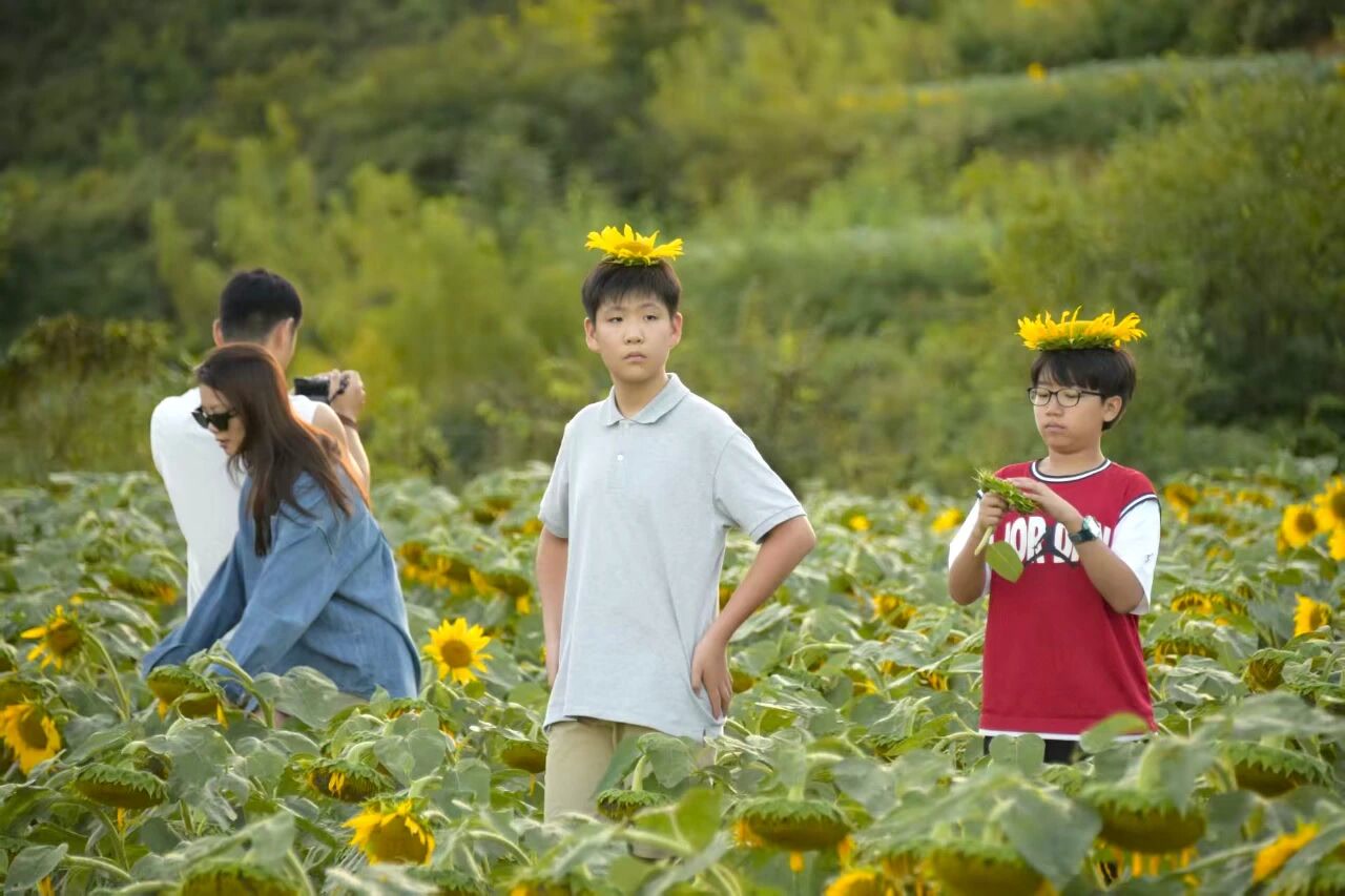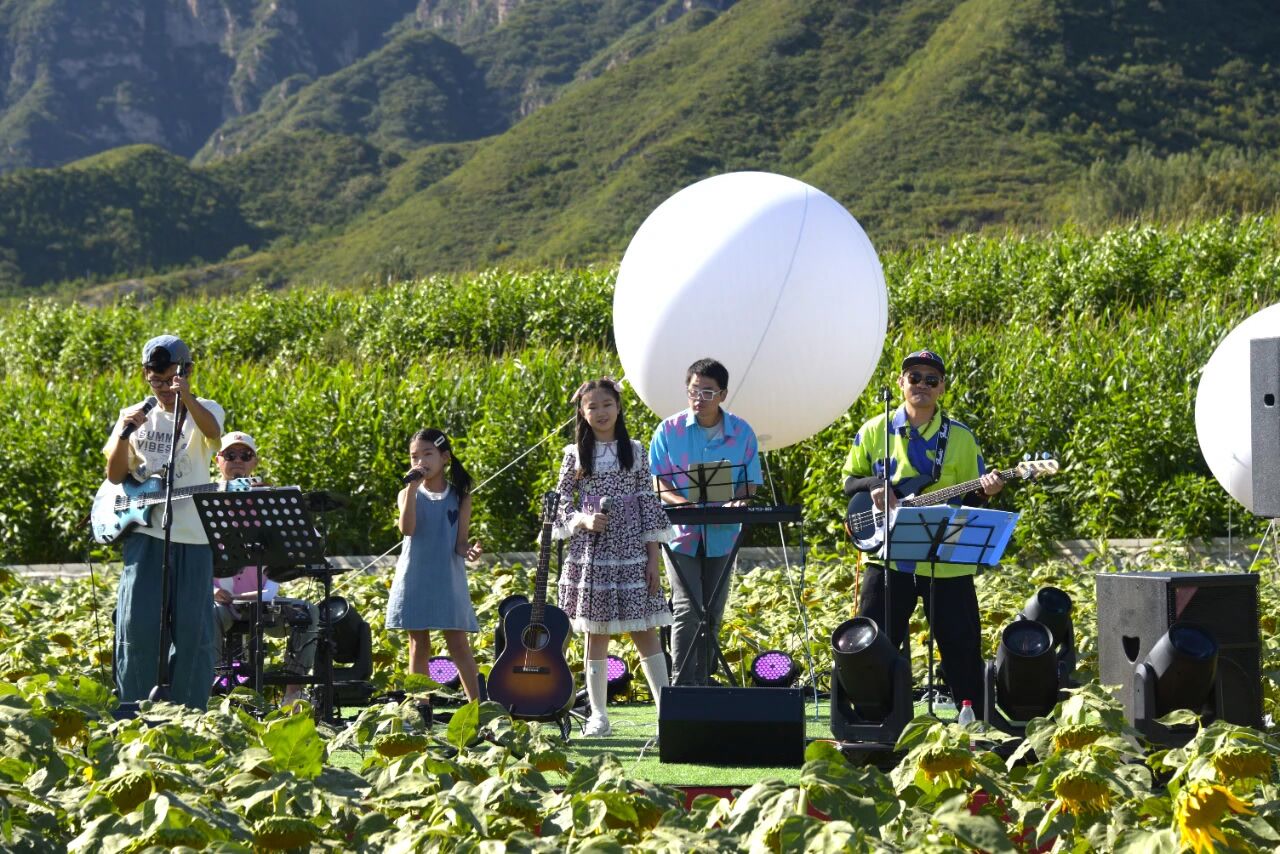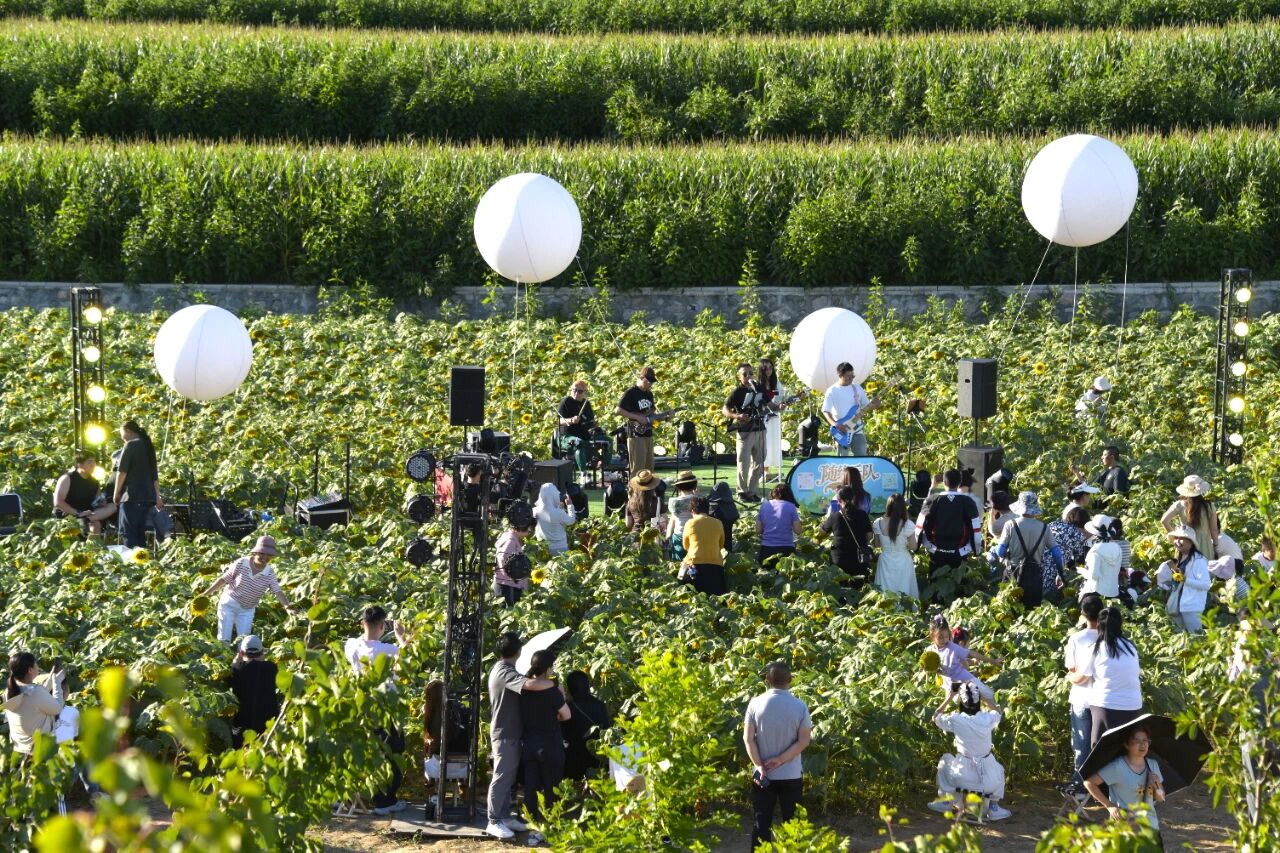 在向日葵花海中,孩子们席地而坐,跟着节奏拍手、跳跃,父母在一旁轻声哼唱,或是举起手机记录下孩子最纯真的笑脸。这一刻,音乐成了最好的陪伴,土地成了最宽广的教室。没有电子屏幕的干扰,只有风、花香、音符与笑声在山谷间回荡。