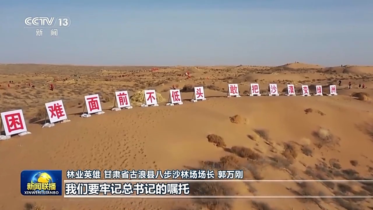 林业英雄 甘肃省古浪县八步沙林场场长 郭万刚:我们越来越深刻地认识到,党的领导是我们做好各项工作的根本保障。眼下,我们正在甘肃、内蒙古交界处,开展联防联治。我们要牢记总书记的嘱托,在治沙的战场上继续拼搏,一代接着一代干,为祖国的生态文明建设贡献更多的力量。