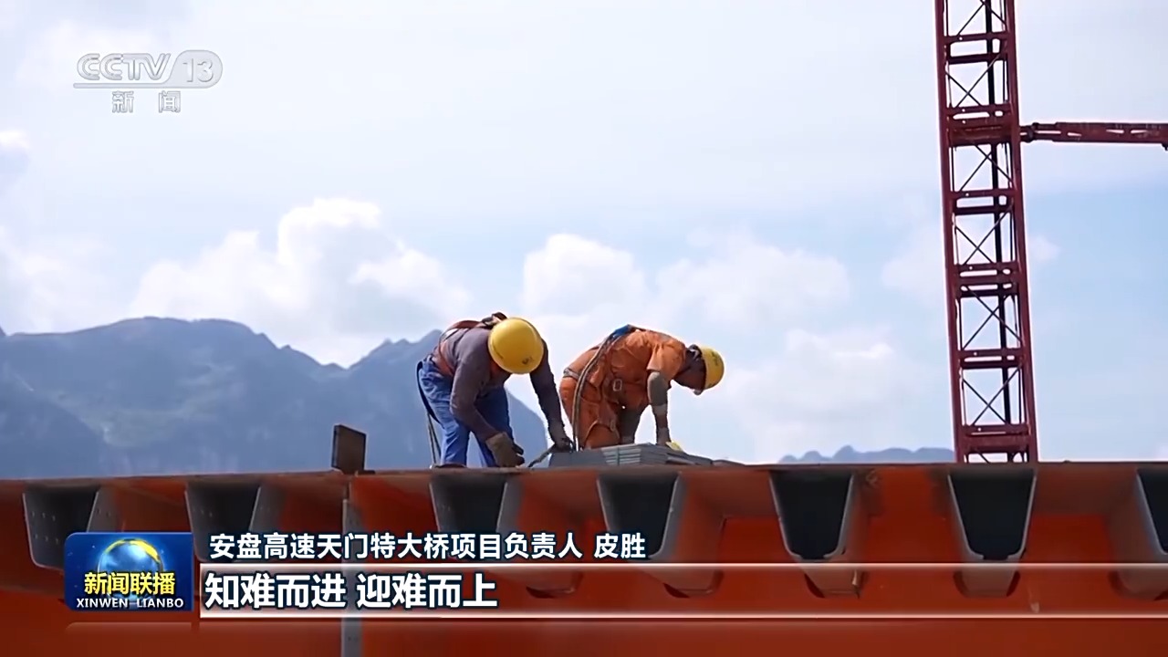 安盘高速天门特大桥项目负责人 皮胜:我们正在为安盘高速天门特大桥的合龙做最后的冲刺。我们要以总书记重要讲话为指引,把先辈们不畏强暴、血战到底的英雄气概转化为我们干事创业的动力,知难而进、迎难而上,大力弘扬工匠精神,坚决做好大国工程。