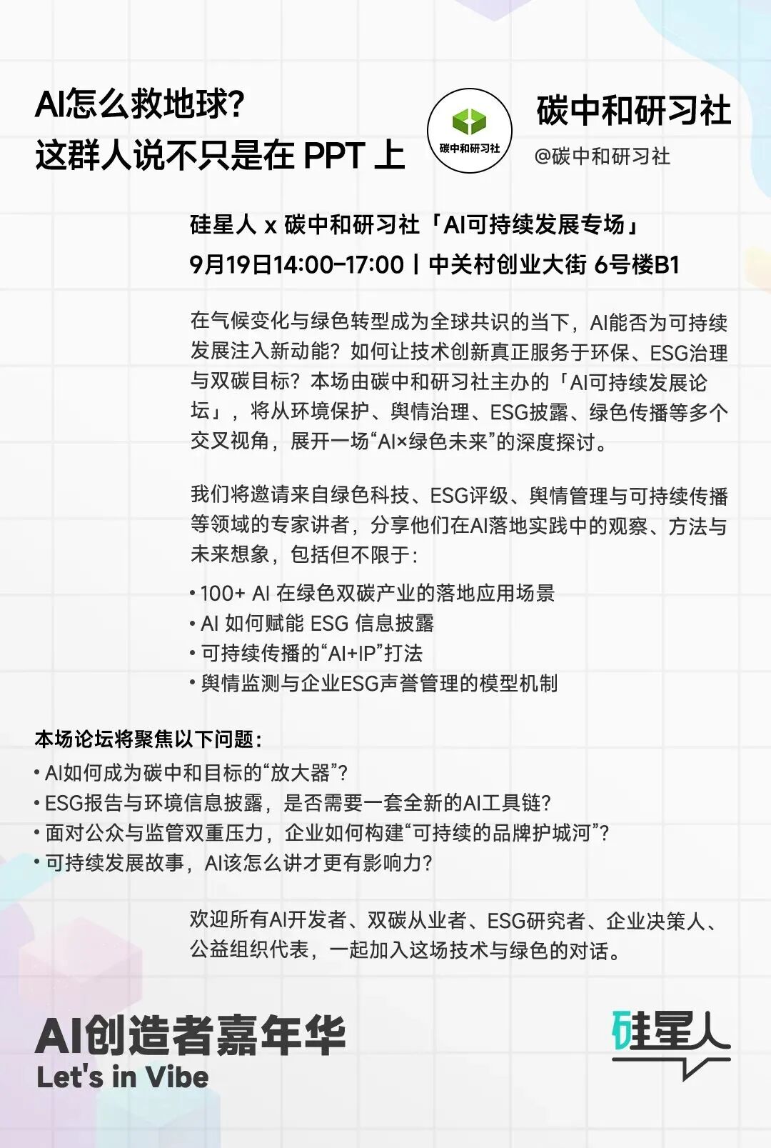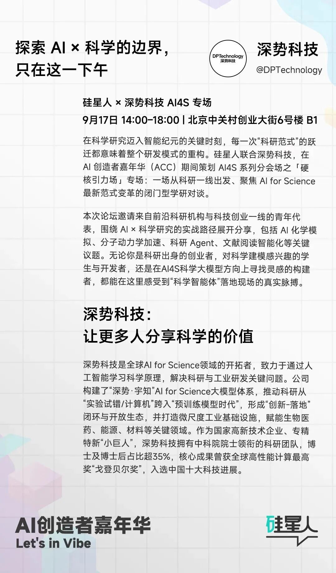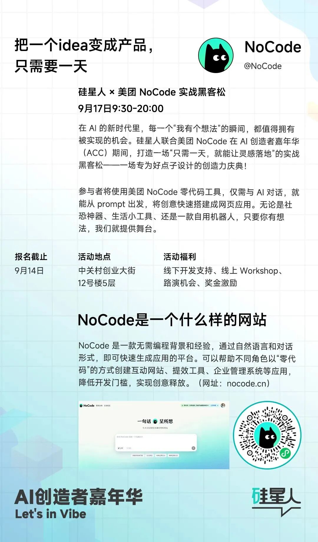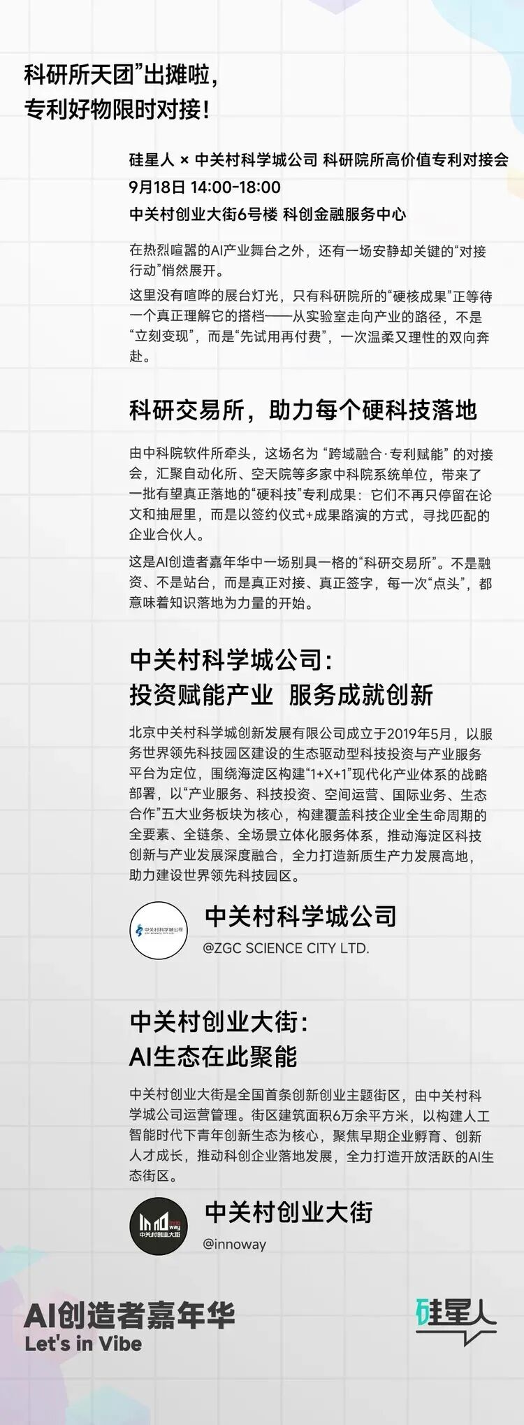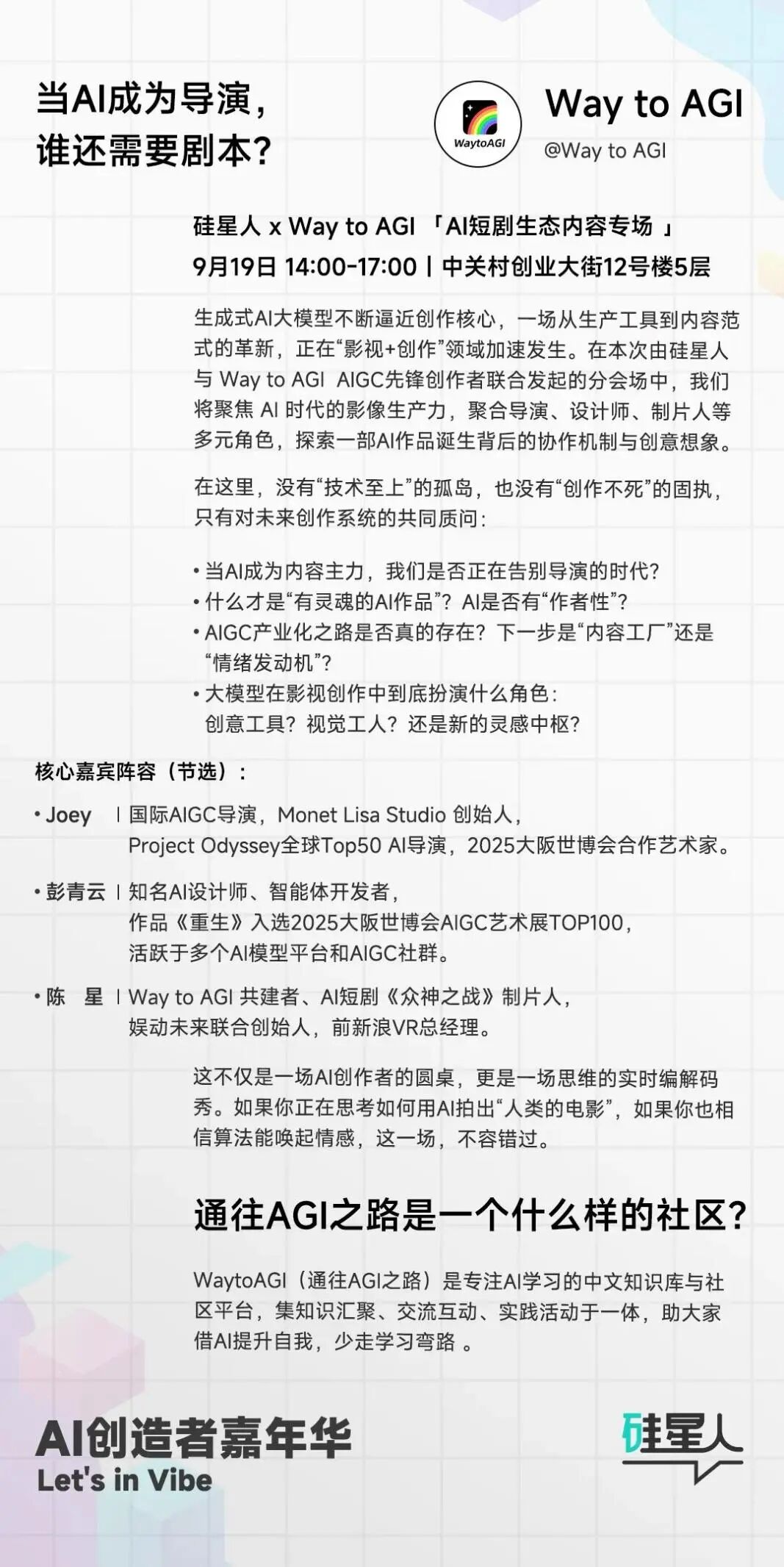 从NoCode工具的极速落地,到通往科学边界的AI探索;从新范式企业的真实表达,到中关村创新土壤里的生态跃动;从打工人视角切入的行业解构,到AI玩家的社交挑战与资金链接……这一天,大街上每个角落都在同步上演属于AI创造者的独立舞台。