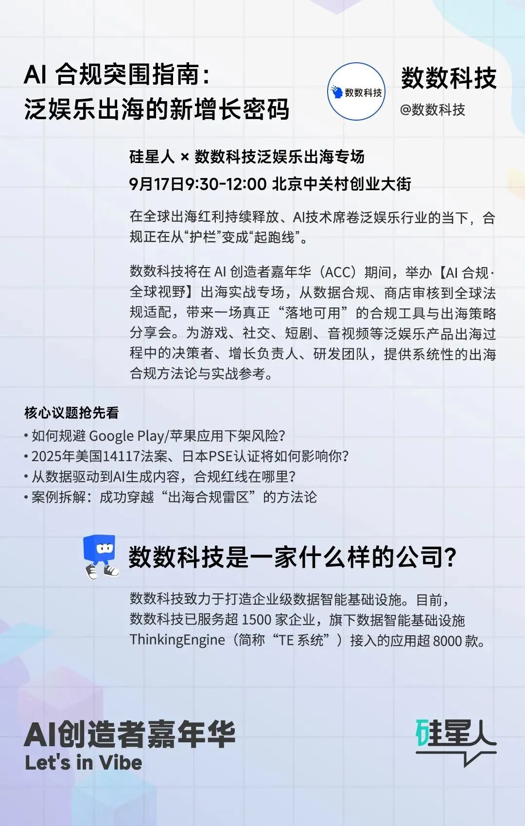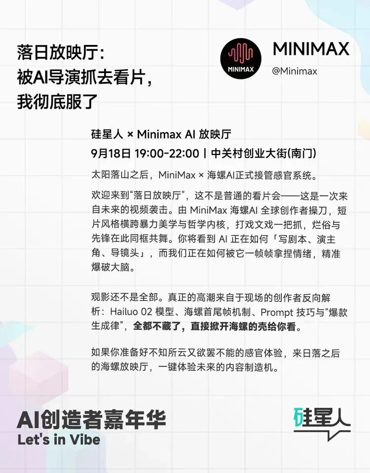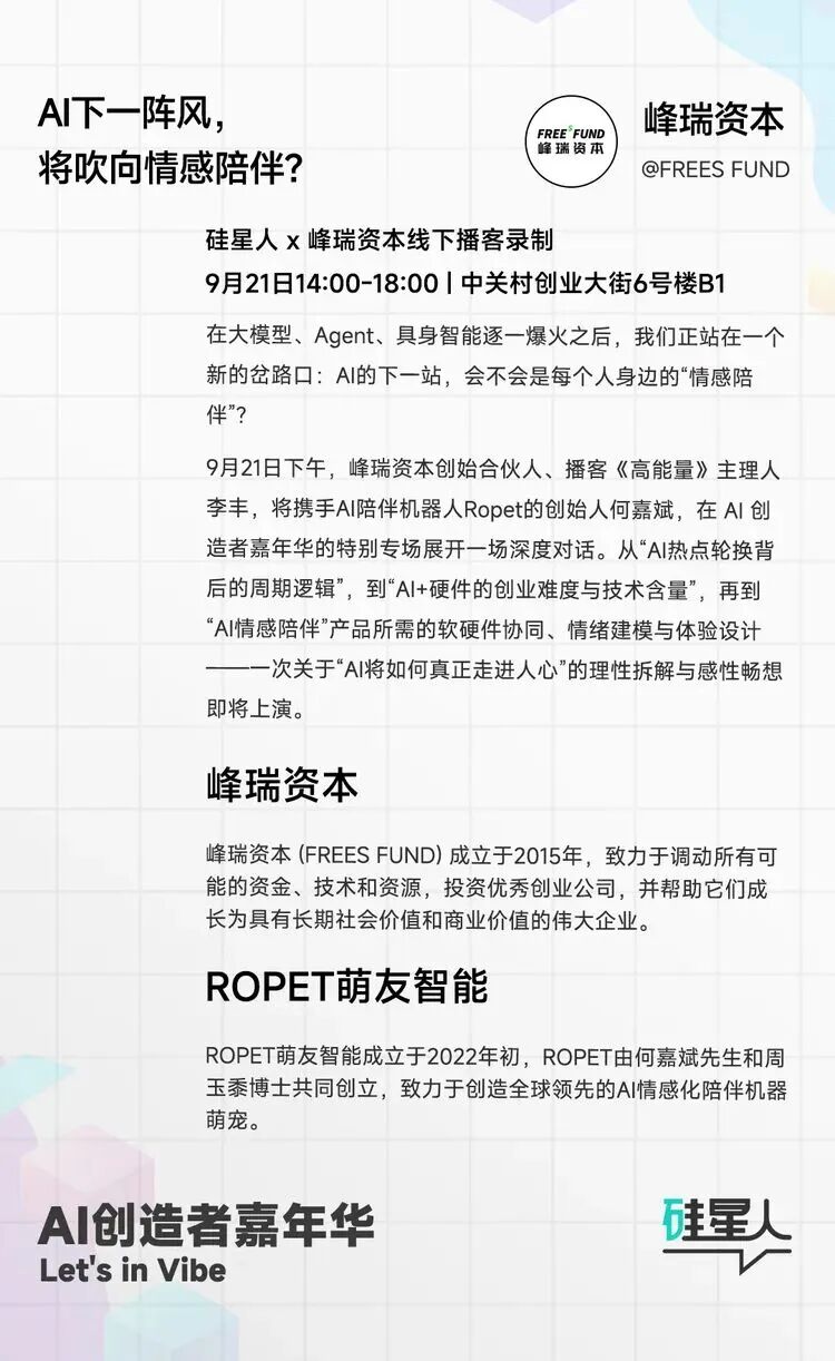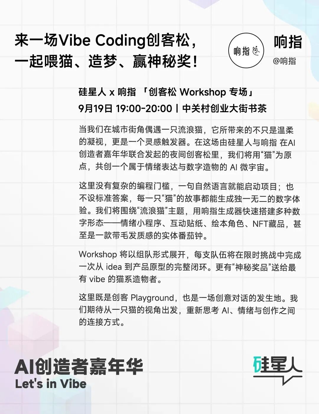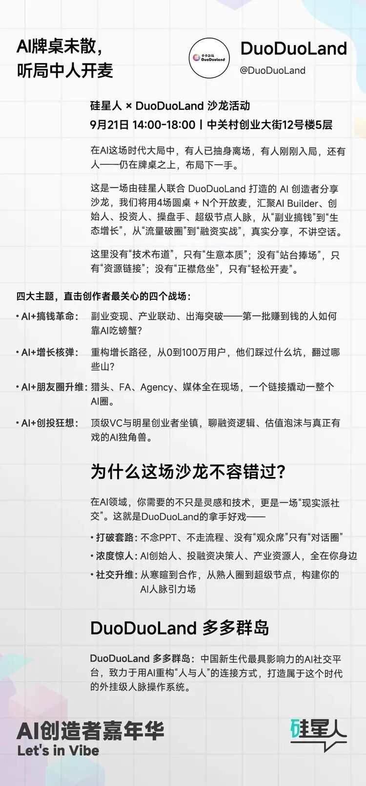 无论你是充满奇思妙想的青少年——想在AI创意秀上展现天马行空的灵感;还是深耕行业的资深从业者——期待在大佬云集的资本围炉中链接资源、碰撞商机;亦或是想在轻松氛围中探索AI的爱好者——能在微醺社交里解锁灵感,在紧张刺激的限时创作赛中挑战自我……每个环节都精心设计,只为让AI创新的“Vibe 氛围”持续升温,让不同年龄、不同领域的人都能找到属于自己的参与方式。