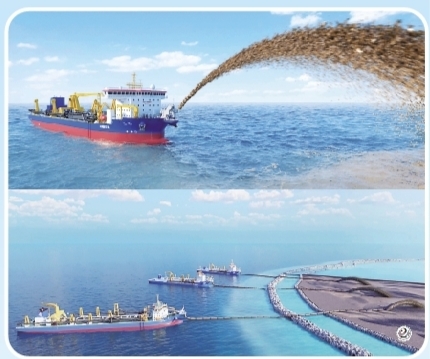 “远运距”——35000立方米的亚洲最大舱容,加上每小时16海里的正常航速,保障了船只能够快速往返于挖泥区与吹填区之间。据统计,这两艘船每小时的整体运输效率较普通耙吸船提升40%以上,工作成本也大大降低。