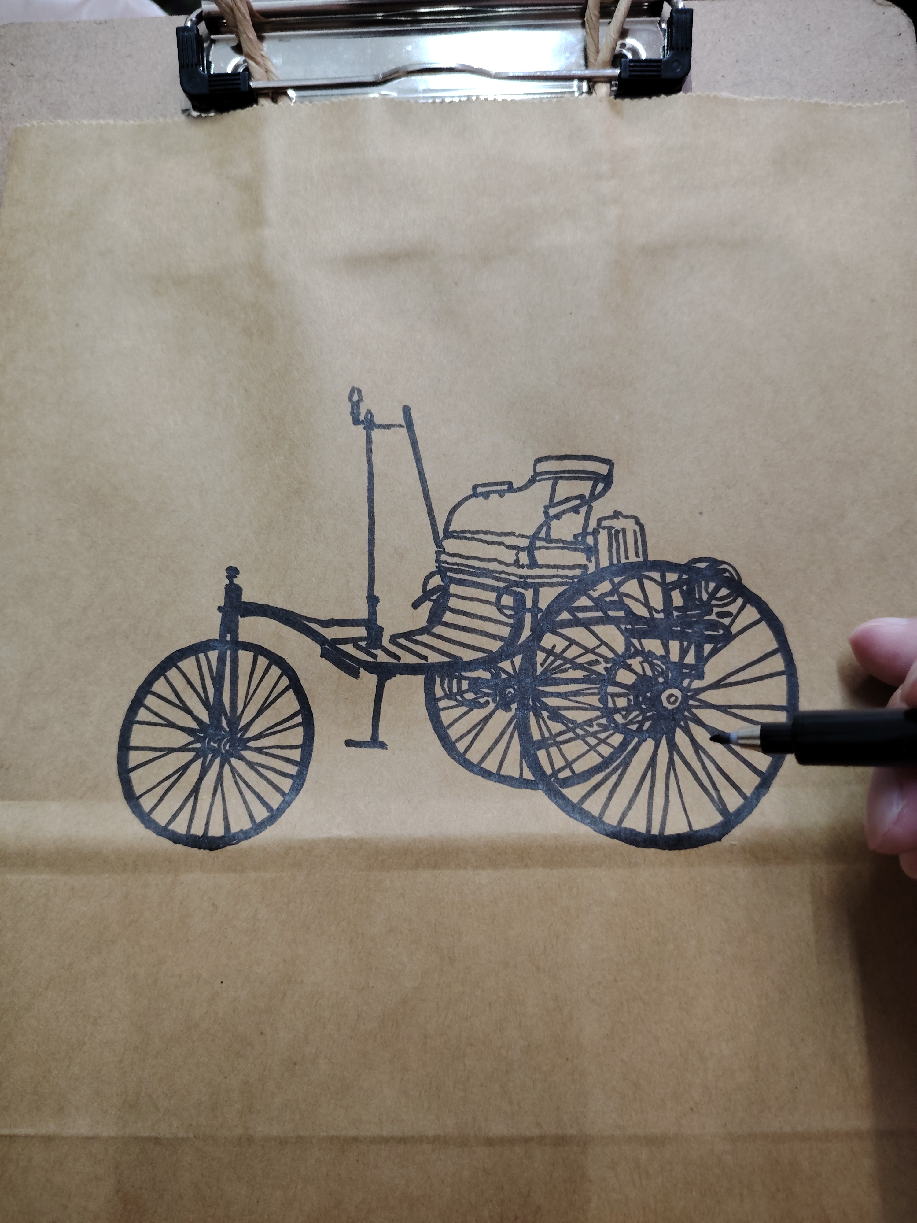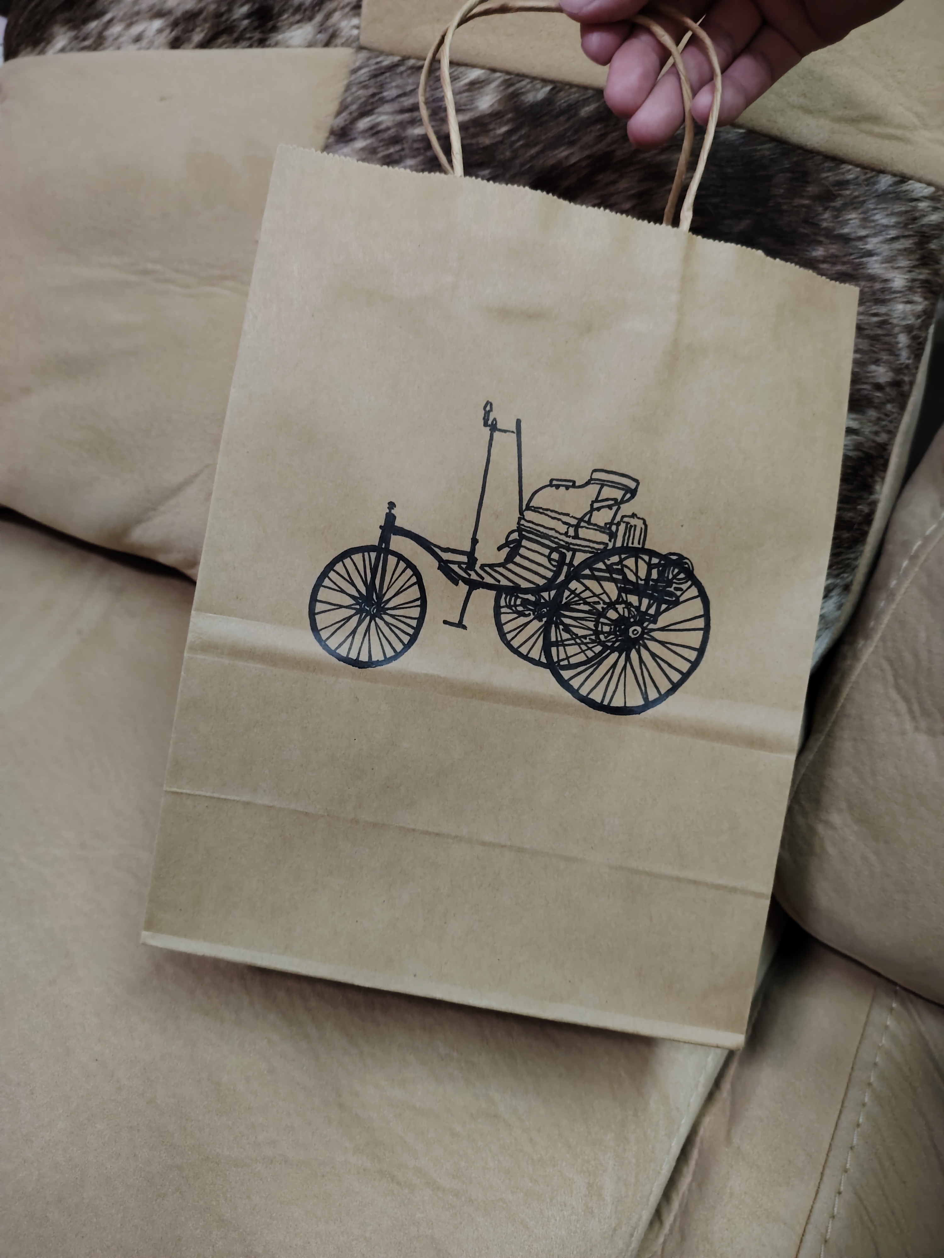 在活动启幕前期,我深入探究品牌发展史及可延展用于叶画体验环节的元素,通过第三方与品牌方沟通提出“奔驰一号”作为本次活动的创作灵感,得到认可。我首先从材料包封面入手,原创手绘的“奔驰一号”成为活动亮点。虽然时间紧迫,但我高效完成20件封面绘制。