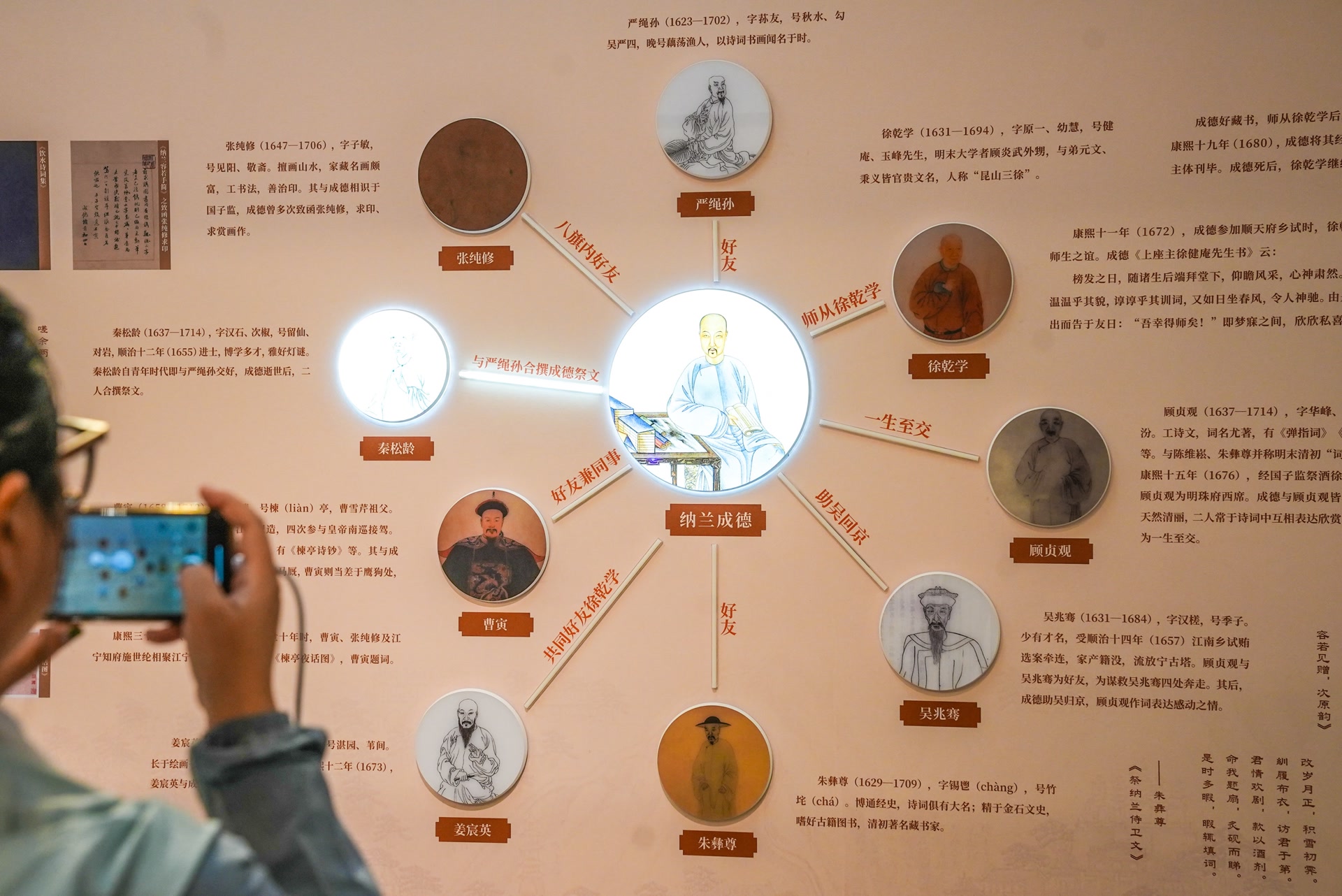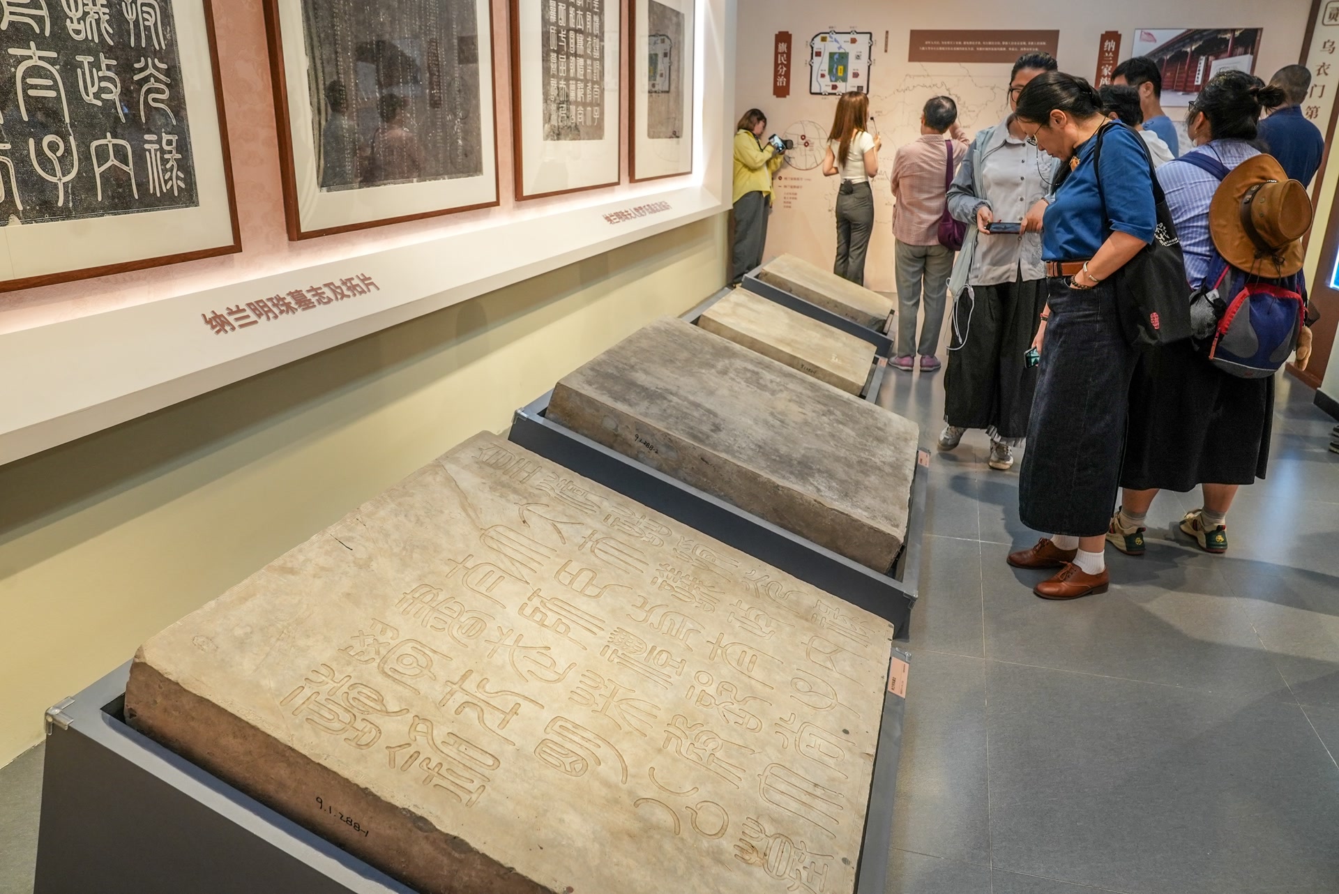 纳兰家族出自满洲“八大姓”之一的叶赫那拉氏,涌现了明珠等著名人物,在清代政治、文化舞台中扮演着重要角色,其家族兴衰变迁与清朝历史演变息息相关。策展人介绍,其宅邸、园林、家庙等相关建筑遍布北京城,成为研究这座古都历史文化不可或缺的重要组成部分。此次展览以时间为序,以人物为线索,首次集中展示了纳兰家族墓志及拓片。观众可以识读碑刻铭文、走进复原场景、欣赏历史地图,以一个家族的兴衰变迁为窗口,走进清中叶政治演进与文化融合的历史图景。
