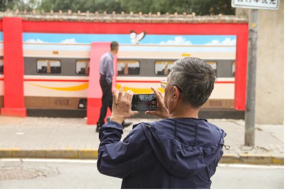 “以前这红砖墙又破又旧,砖头凸的凸、缺的缺,看着就没精神。现在多好,高铁一绘,立马有了现代感!”居民的感慨,道尽了围墙“微提升”带来的大变化。昔日破旧的围墙,如今成了展示太平桥形象的“文化窗口”,更让居民的认同感与归属感油然而生。