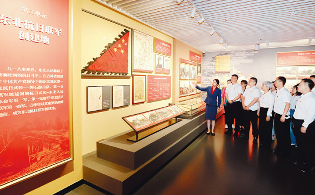2025年8月19日上午,以“铭记历史,开创未来”为主题的吉林省近现代史展在长春市开展,本次展览分为9大展区、28个单元,展出1000余件(套)实物展品,使用图片1200余张、数据图表70余个,全景式讲述自清代以来至新中国成立吉林地区300余年的历史风貌。图为9月9日,观众正在参观展览“东北抗日联军创建地”内容。 吉林省委宣传部供图 李姣月/摄