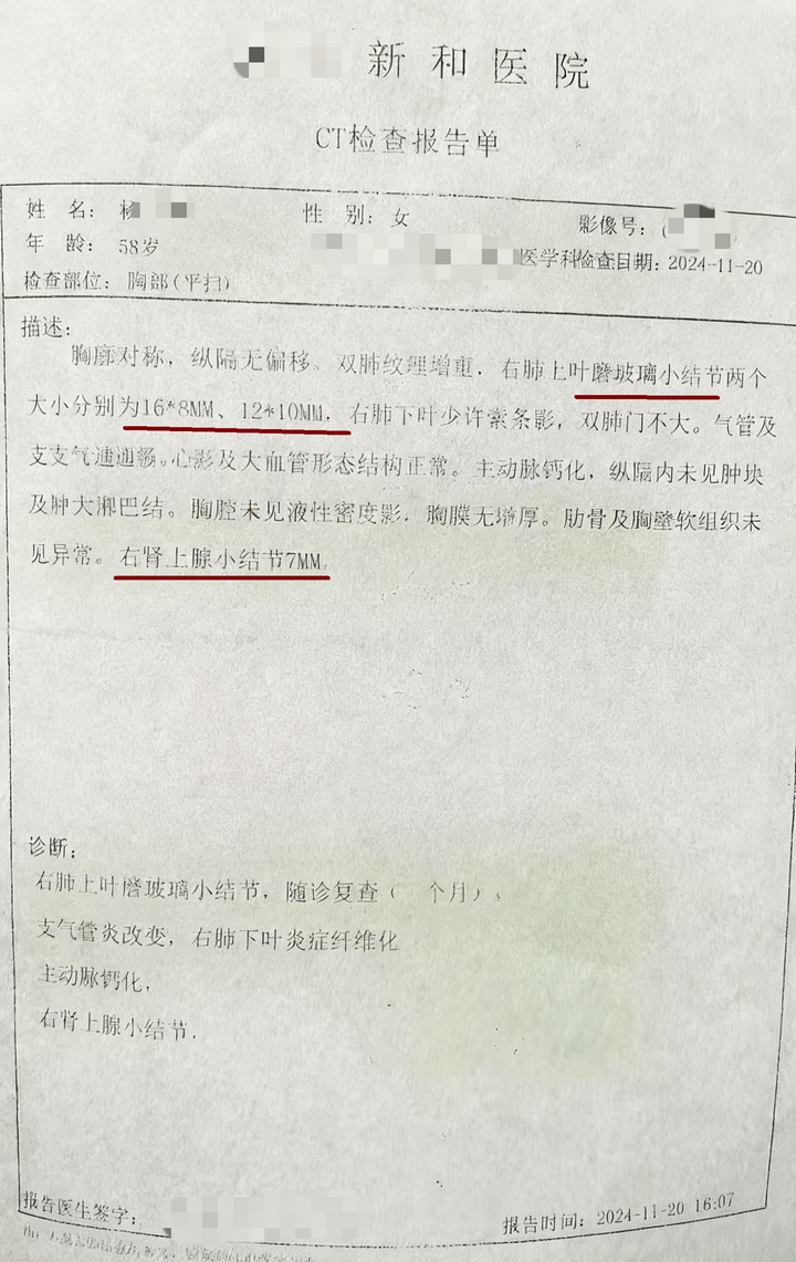 杨女士在退休前,是一位工龄超过40年的铁路人。但令人没想到的是,让她的人生踩下“急刹”的,不是信号灯,而是2024年11月20日查出的右肺两枚大小分别为16*8mm、12*10mm的超恶性警戒线的磨玻璃结节。