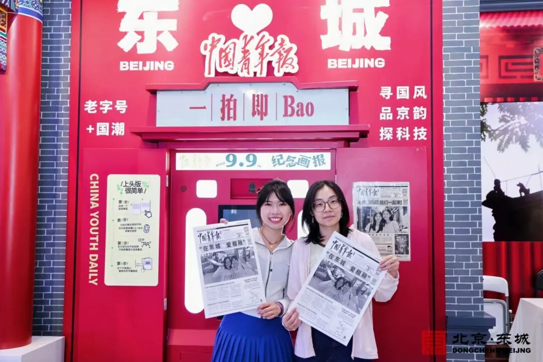 作为北京中轴线上的重要地标,为生动展现前门地区的独特魅力,展区对前门的文化底蕴与现代创意进行了巧妙融合。中国青年报社“一拍即Bao”文旅时光拍报机嵌入前门网红打卡墙,游客可定制“中青报×北京东城”联名专属报纸,定格属于自己的中轴记忆。