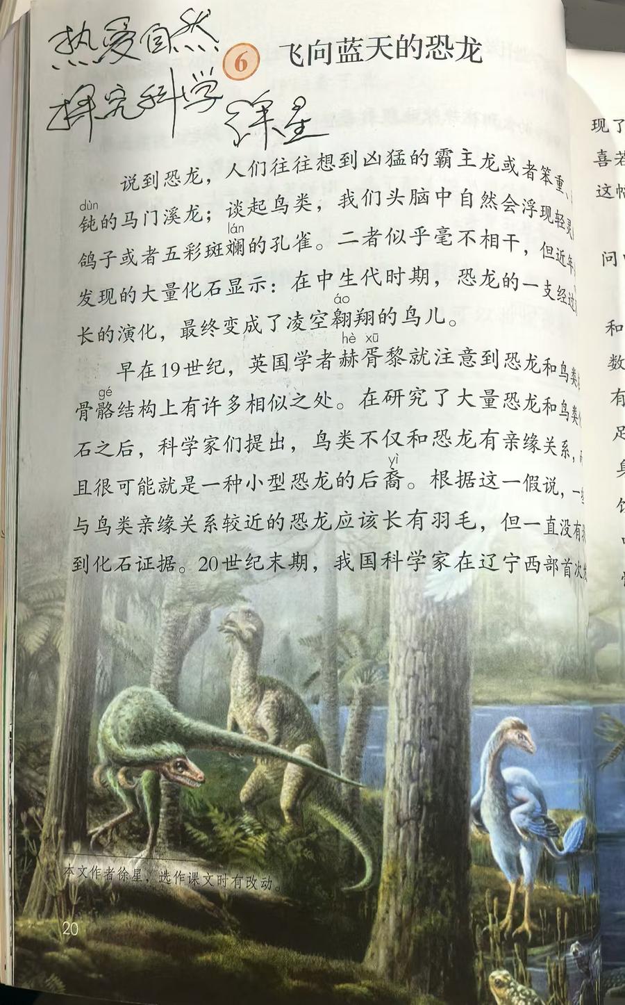 人教版语文四年级下册教材中,有徐星院士写的一篇文章《飞向蓝天的恐龙》,你读过吗?