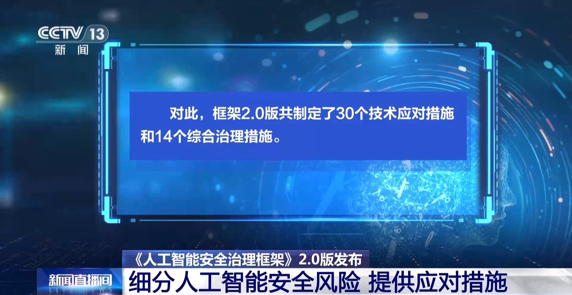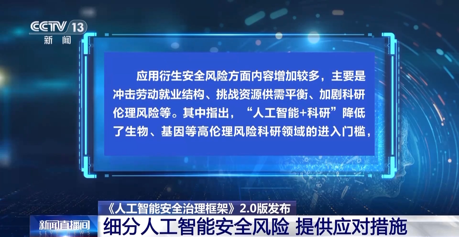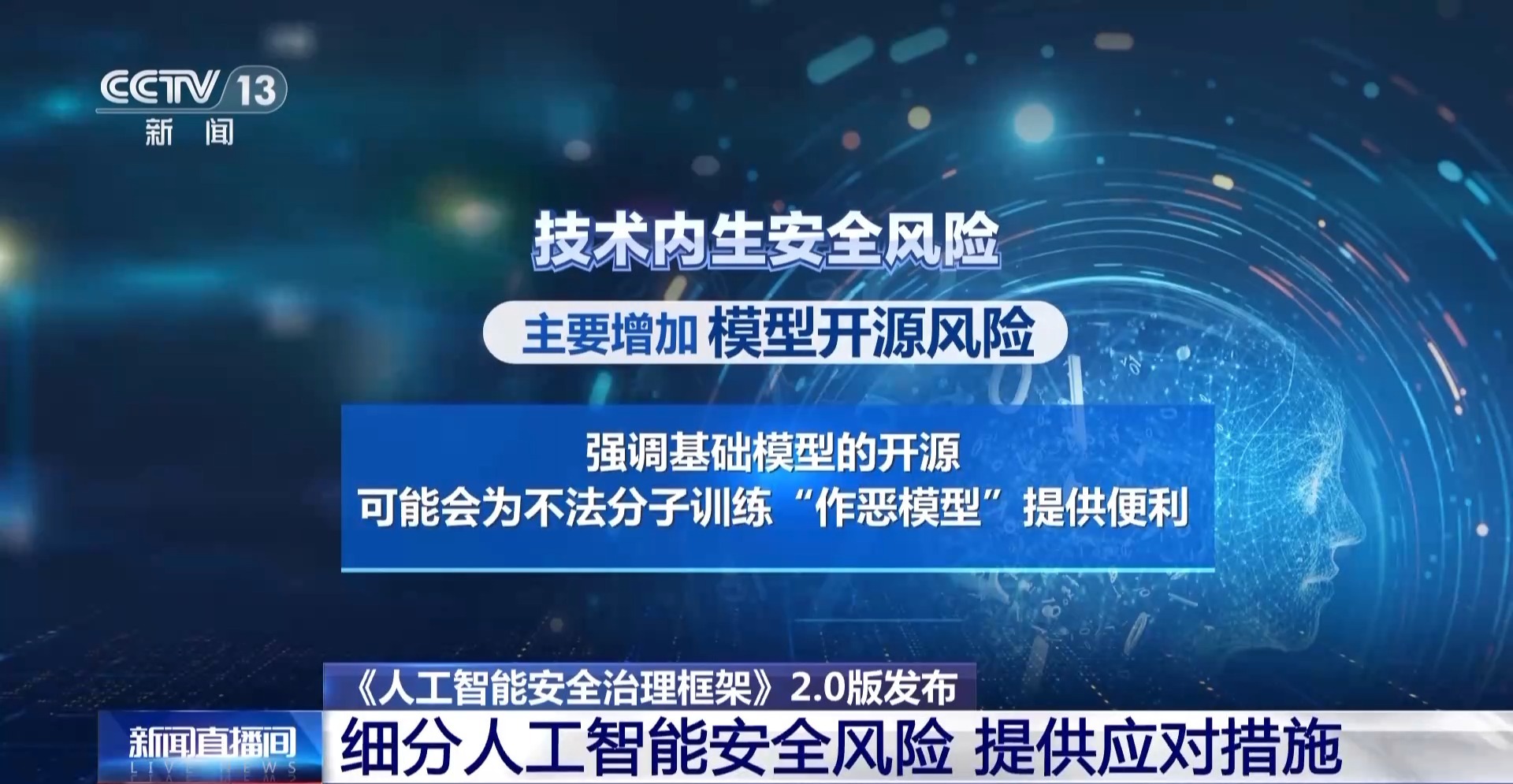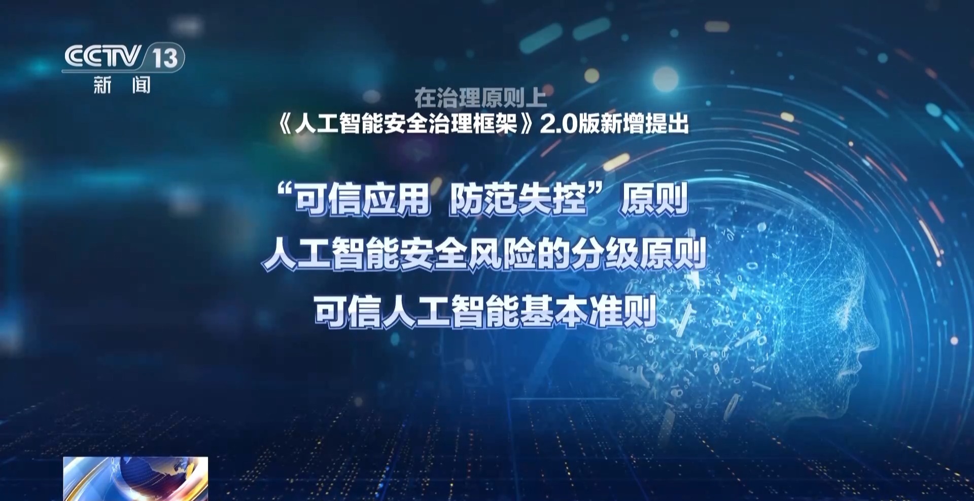 国家互联网应急中心副主任 刘博:在管理方面,框架2.0新增提升全生命周期安全能力,安全有效释放重要行业应用需求,构建科技伦理准则,增进协同应对失控风险共识等综合治理措施。