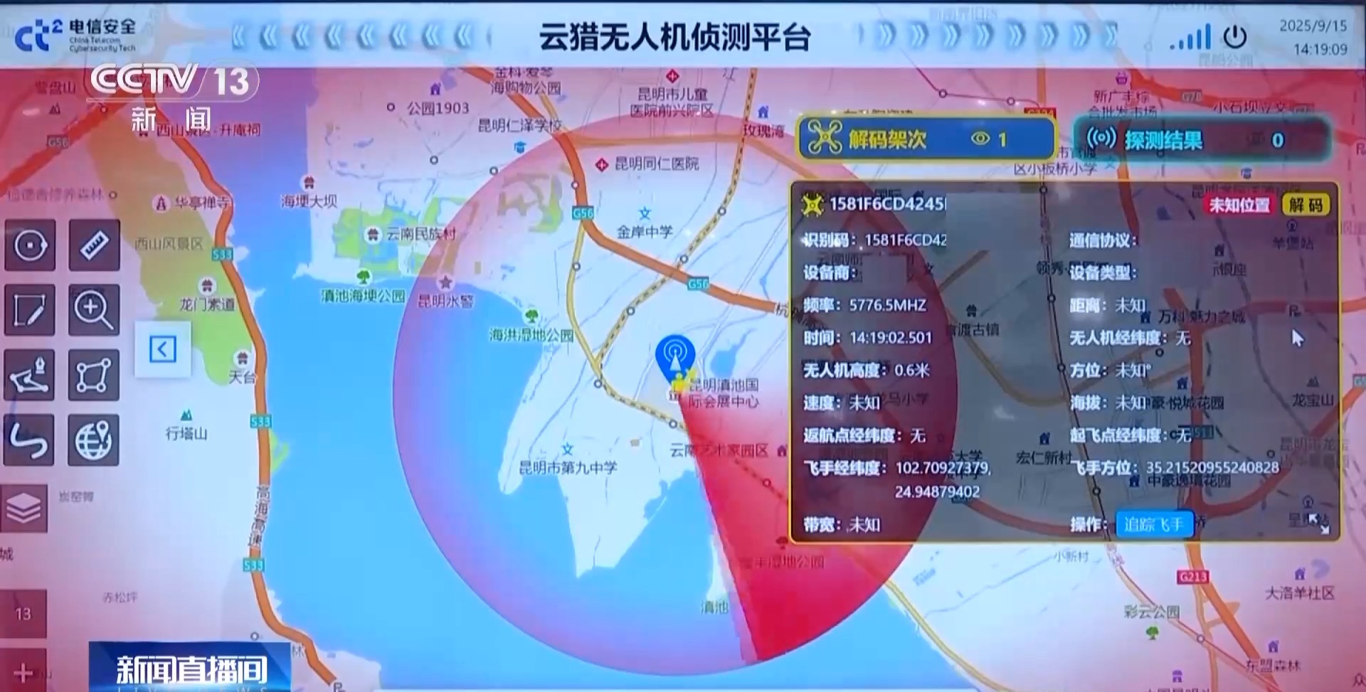 参展商技术人员 何应彪:识别码相当于这个无人机的身份证。我们通过识别码可以溯源到这个无人机的持有者。这套平台最关键的功能,就是定位到了飞手的经纬度信息。通过飞手的经纬度信息能够定位到飞手的位置。通过追踪飞手的功能,协助公安机关去找寻“黑飞”无人机的飞手,对打击“黑飞”“乱飞”的行为作出有力支撑。