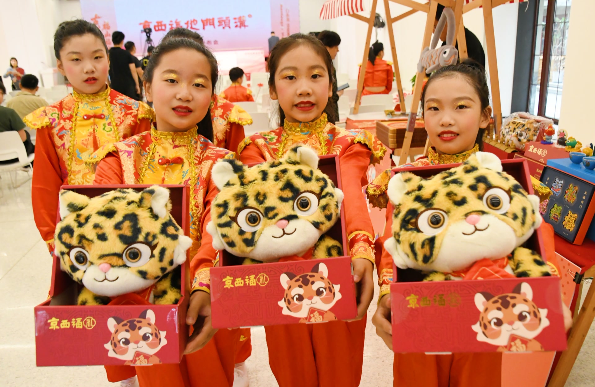 此外,现场发布的多款“京西福礼”文创产品同样吸睛。如取自潭柘寺“福海珠轮”匾额的拼图徽章,以及呼应“迎豹回家”生态计划的福豹玩偶。